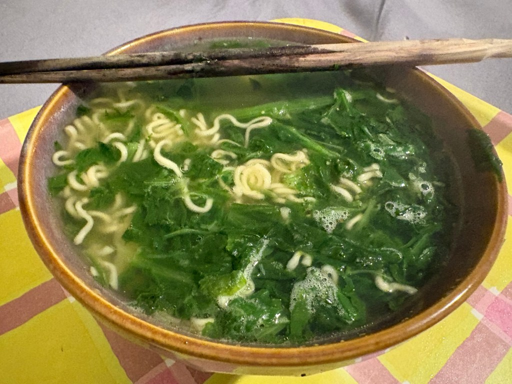 Zum Abendbrot gibt es nur was Leichtes – eine Chicken-Ramen-Suppe mit viel TK-Spinat und Ingwer und Zitronengras. Dazu und danach schaue ich weiter Letterkenny.