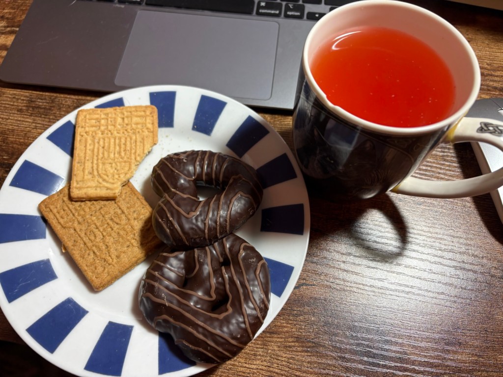 Ich kaufe ein paar Dinge im Drogeriemarkt ein (Heißer Sanddorn mit Granatapfel ist quasi Medizin, kein Lebensmittel!) und gehe vorsichtig wieder nach Hause. Dort dann heiße Vitamine und Weihnachtssüßkram (Endlich auf der Zielgeraden…) zur nächsten Schreibtischeinheit.