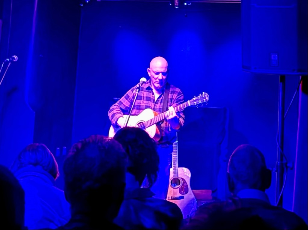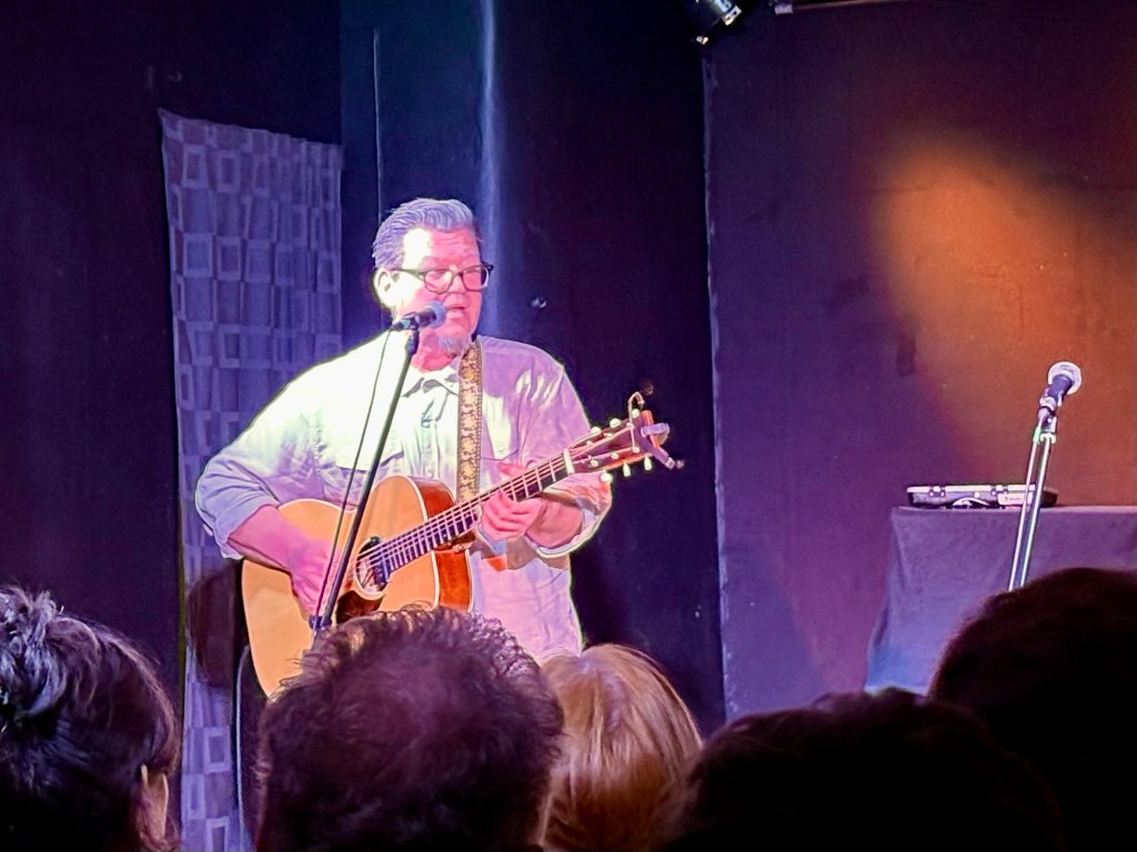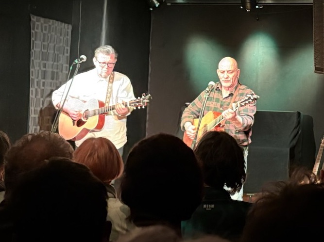 Nach dem Essen spazieren wir weiter zu einer Kleinkunstbühne, wo heute Abend kanadische Musik gegeben wird. Es spielen auf: Michael Friedman und Paul Pigat aus Vancouver. Wir halten ein kurzes Schwätzchen mit dem ein Heimspiel spielenden Mike (kanadischer Ossi mit breitem Ostberliner Dialekt), dann suchen wir uns unsere Plätze und vertreiben uns die Wartezeit. Das Konzert beginnt pünktlich mit einem deutschen Stück, danach wird auf Englisch gesungen und auf Englisch/Berlinerisch parliert. Zwei Gitarren, eine zwischenzeitlich nur mit fünf Seiten, zwei Stimmen, ein wilder Ritt durch Blues, Jazz, Folk und Singer/Songwriter. Dazu gibt es Ansagen, die sich unfreiwillig mit dem Kinderschänder im Weißen Haus beschäftigen, mit „Elbows Up“, aber auch mit Hoffnung, mit Vancouver, mit Ost-Berlin und der Liebe. Zum Schluss muss ganz leise gesungen, gespielt und geklatscht werden, weil es schon nach 22 Uhr ist.