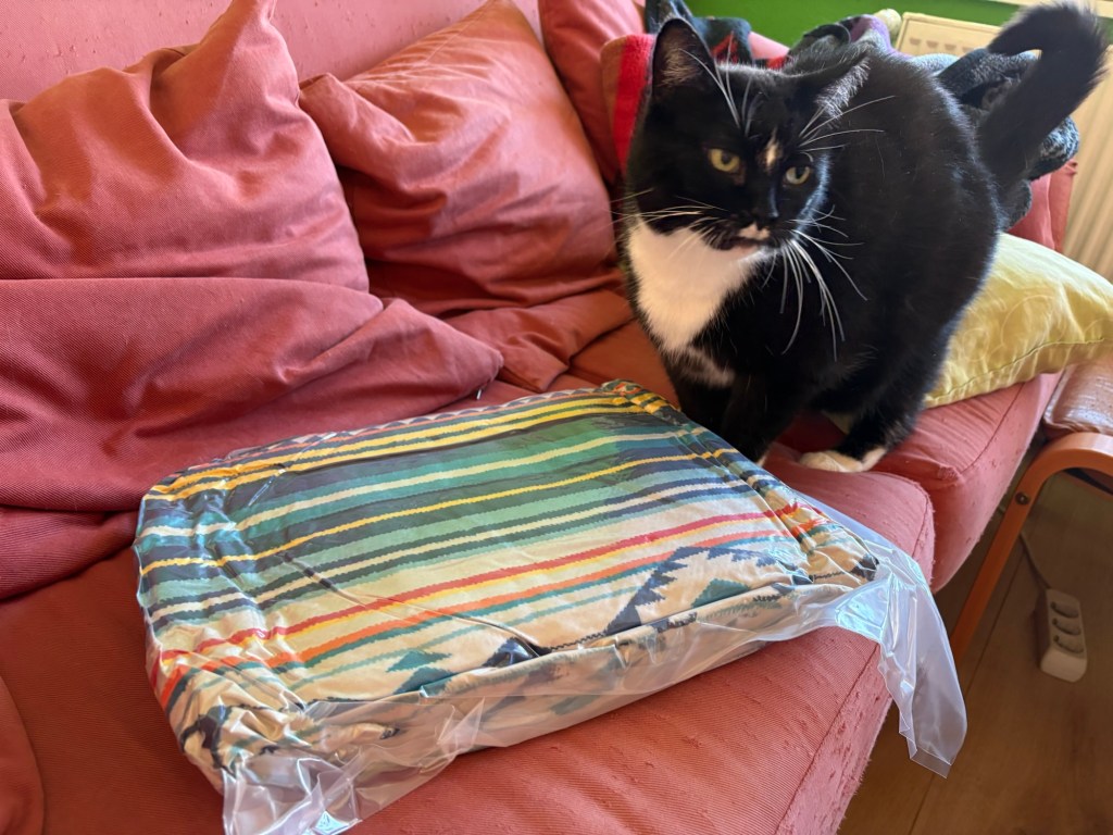 Wieder am Schreibtisch geht es dann für heute in den Endspurt, unter anderem mit einem Call mit Buenos Aires und einem Call mit Edinburgh und Mexiko City. Und dann ist irgendwann Feierabend. Ich packe ein Paket aus, das zwischen den Calls angekommen ist. Die vakuumierte Decke kommt erstmal direkt in die Waschmaschine und wird dann bald eingeweiht, hoffentlich hält sie der geballten Katzenpower Stand!