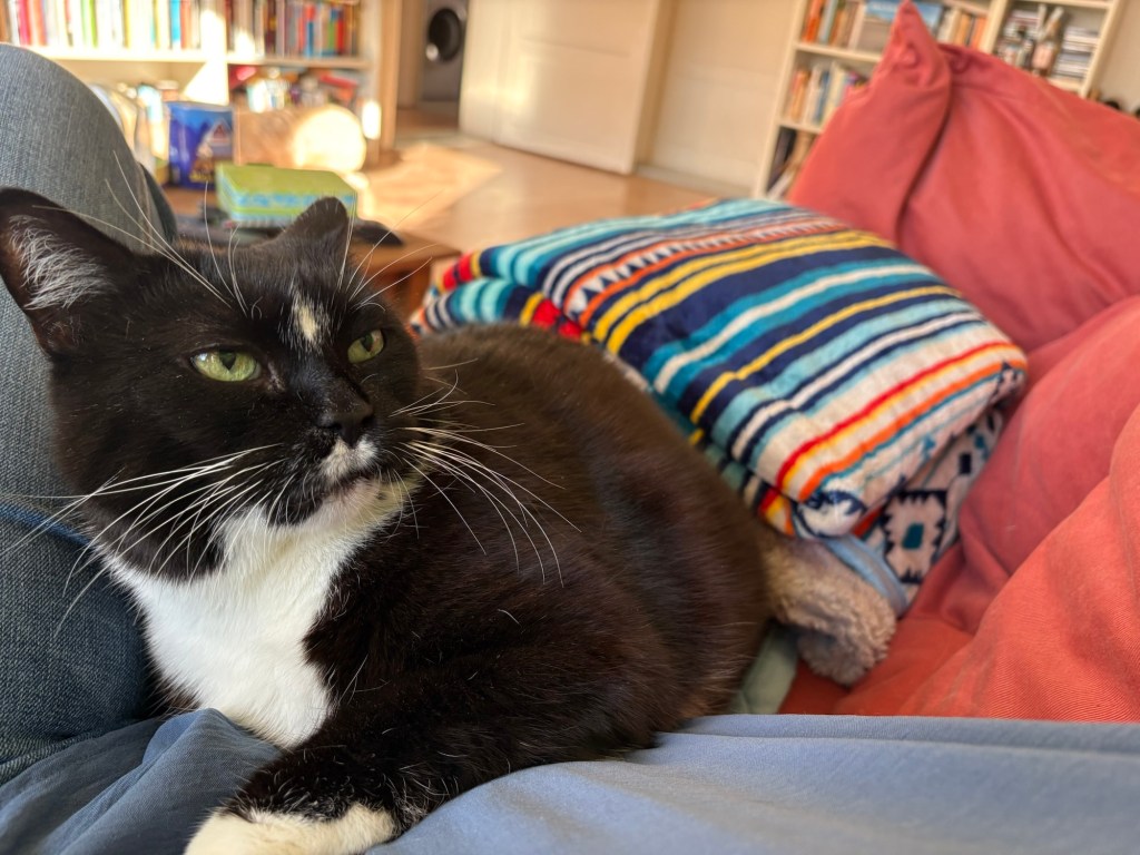 Wieder zuhause schnell Katzen füttern, Tee kochen (Ingwer, Kurkuma, Zitrone), Müsli zusammenschütten und dann sitze ich kurz nach 9 am Schreibtisch als wäre nichts gewesen. Die Katzen auch.