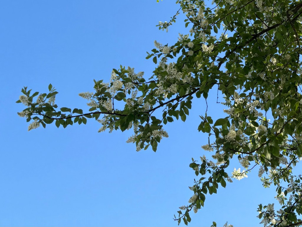 Schnelles Fertigmachen, Katzen füttern, Müsli einpacken, Weg-Mate schnappen und dann geht es auch schon raus in den sonnigen Frühlingstag. Inzwischen ist viel Blütenrieselns, bräunliche von den Magnolien, weiße von Kirschen und Mirabellen. Aber einiges hängt auch noch.