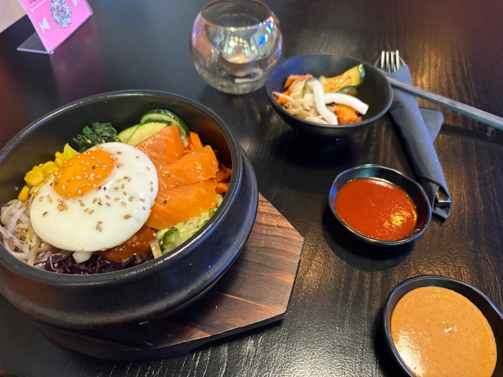 Mein für den Vormittag angesetztes Meeting fällt spontan aus, ich habe genug Zeit für Organisatorisches und räume ein bisschen digital auf, sortiere, dokumentierte und priorisiere. So vergeht die Zeit bis zur Mittagspause. Für die probiere ich ein koreanisches Lokal um die Ecke aus und esse für einen okayen Preis (für heutige Verhältnisse) ein sehr gutes Bibimbap mit Lachs und Banchan.