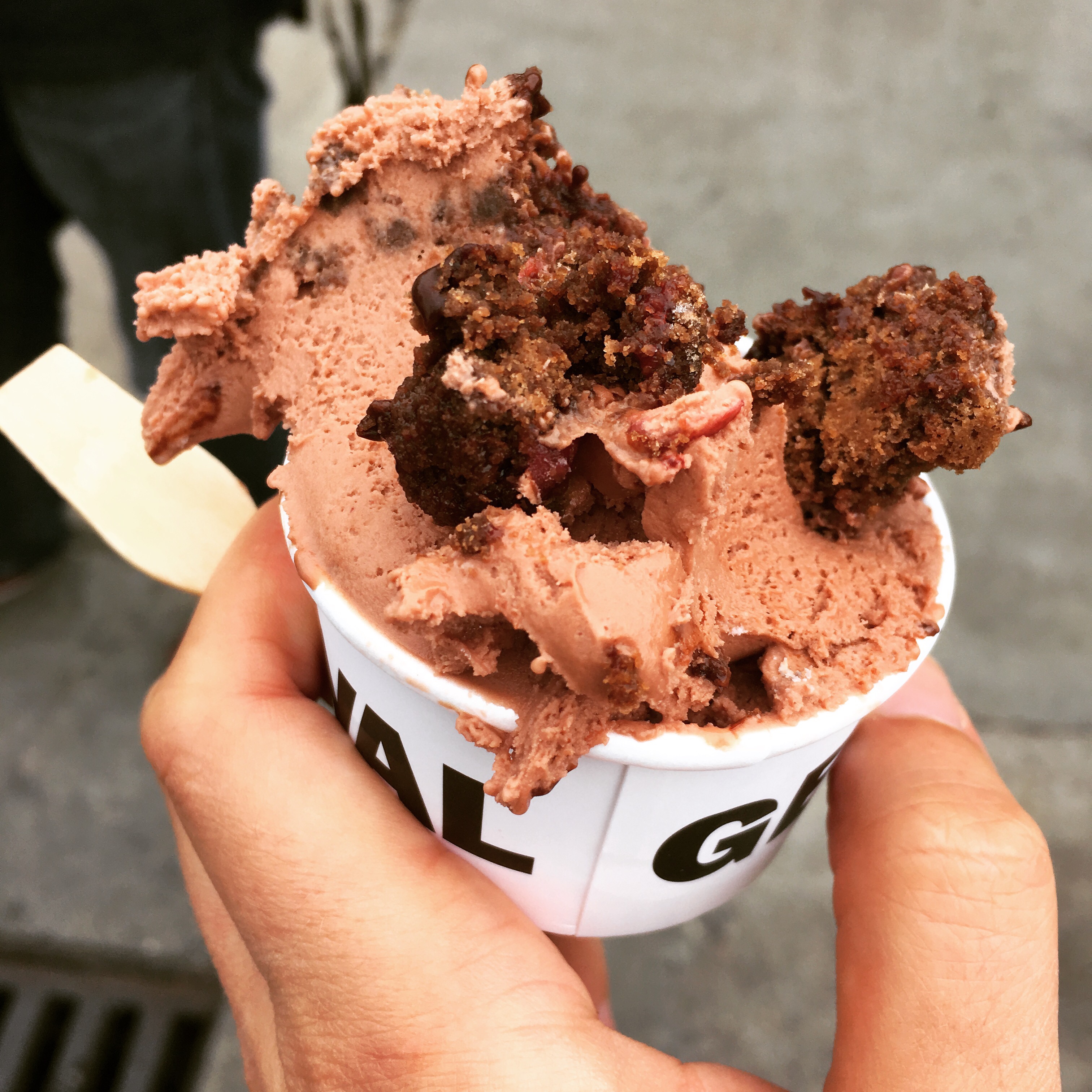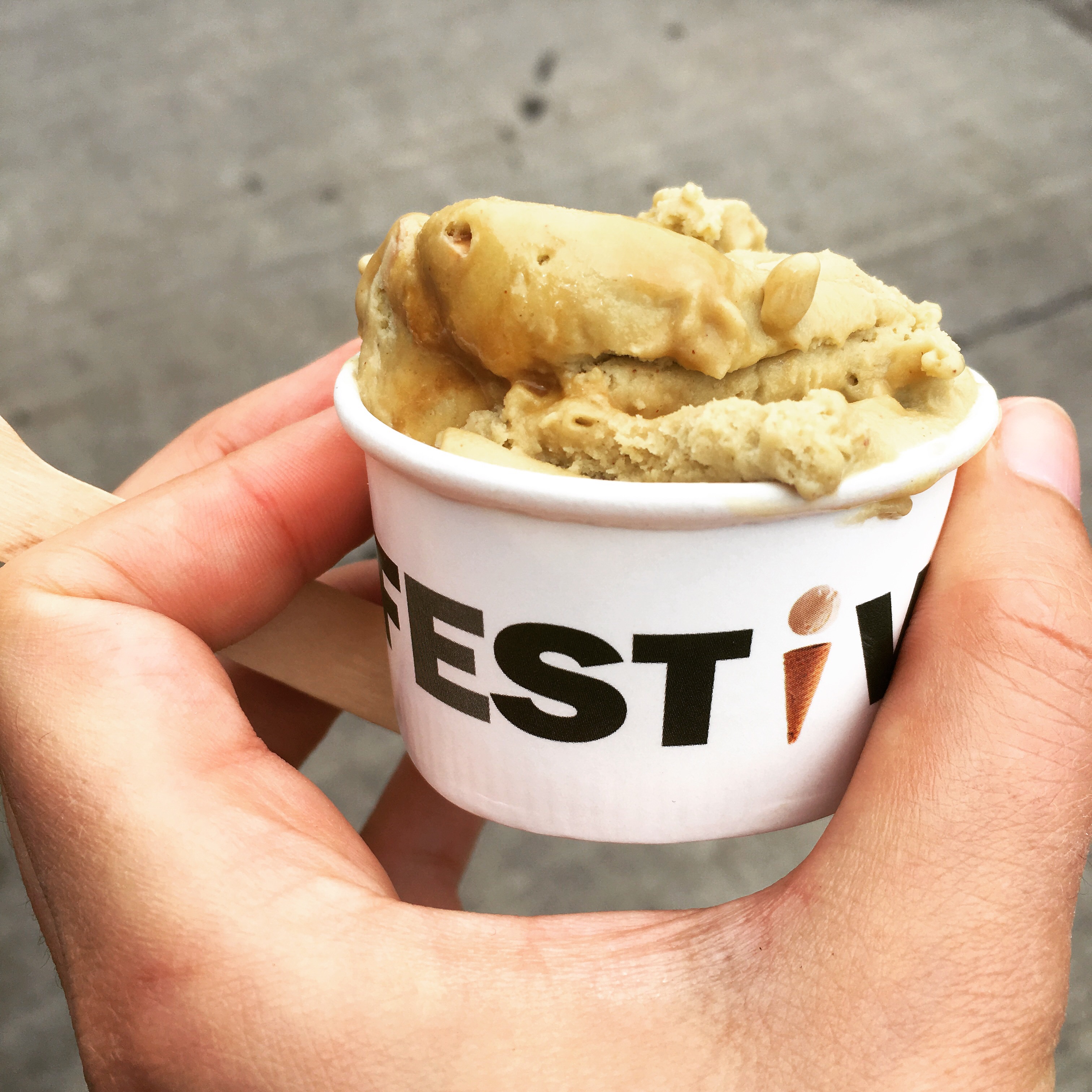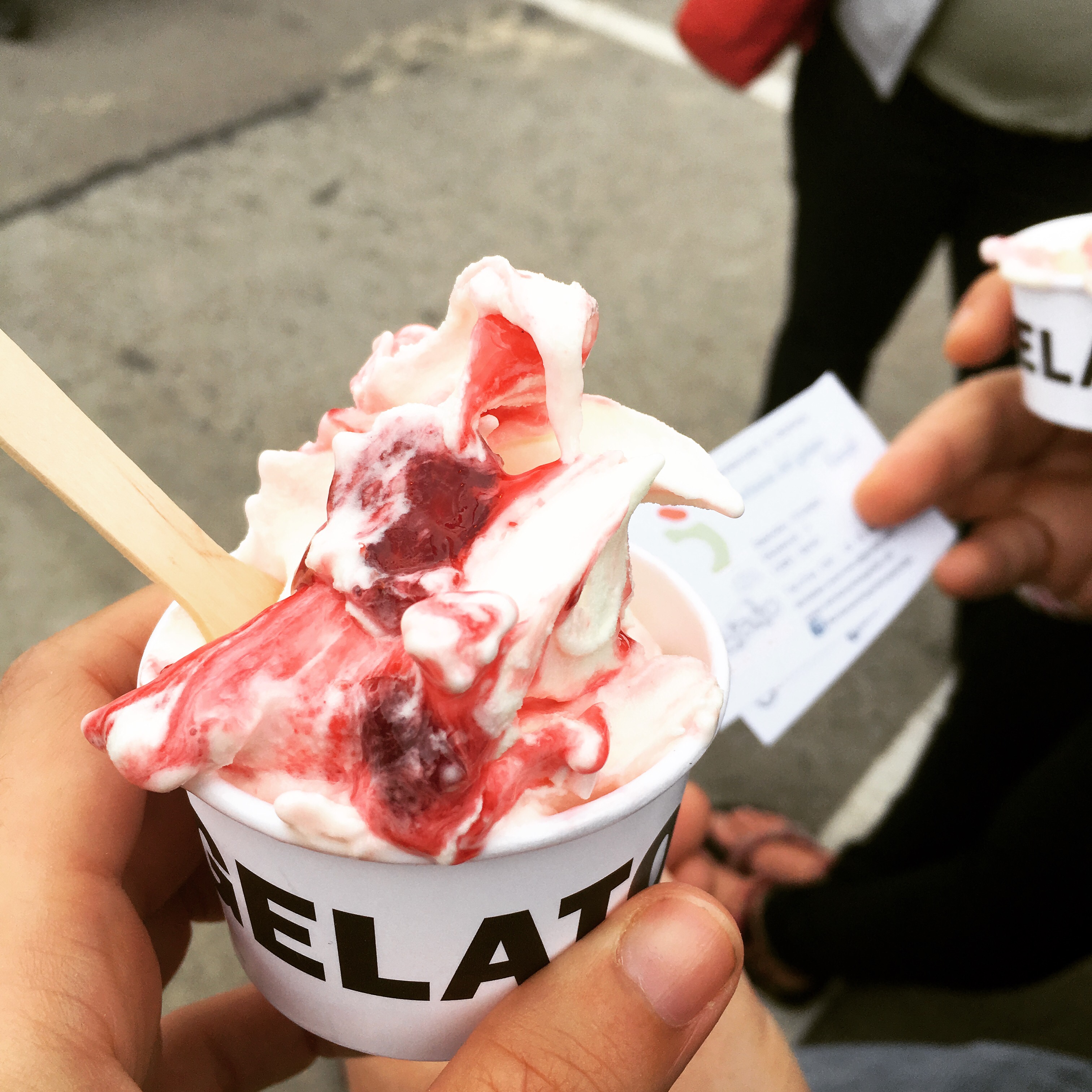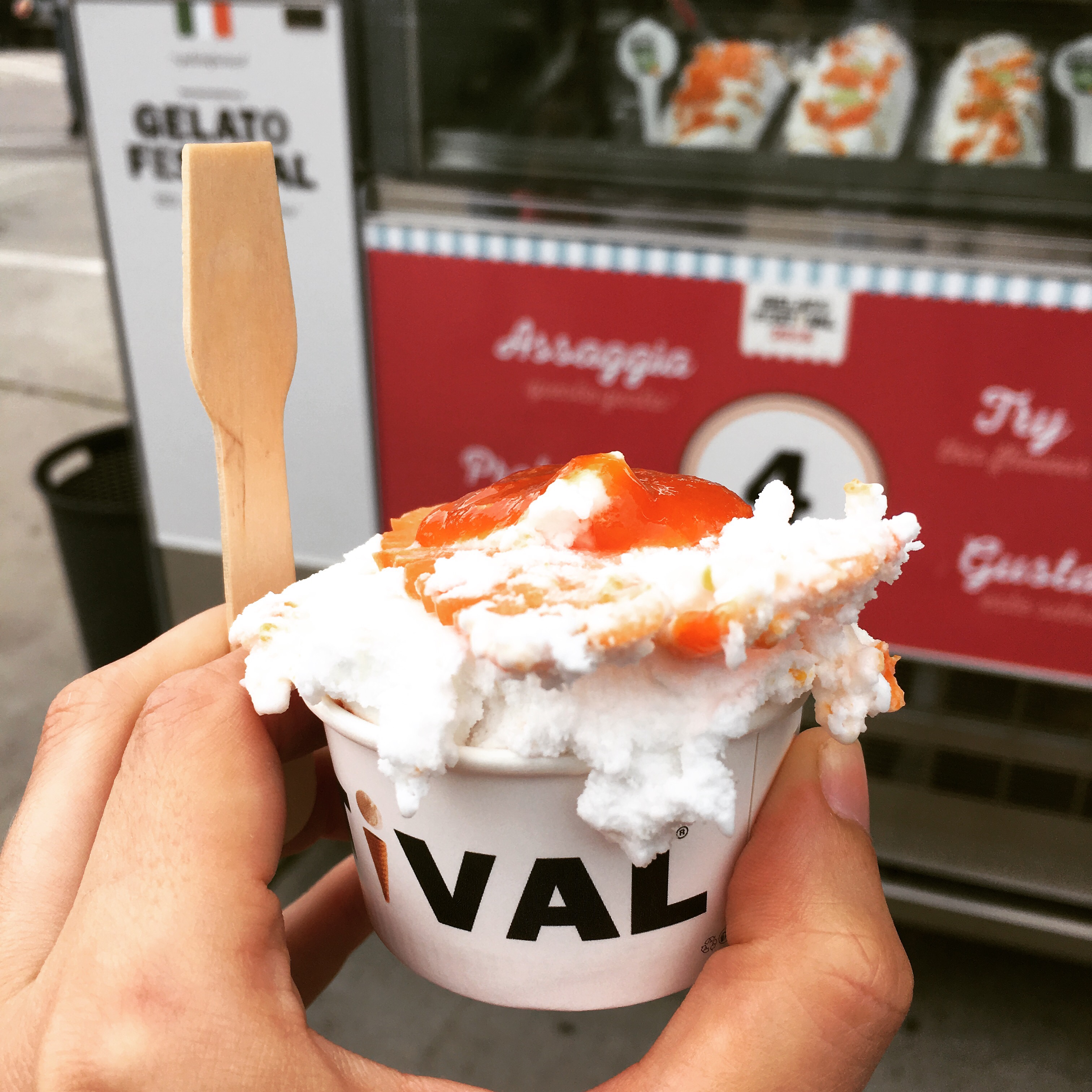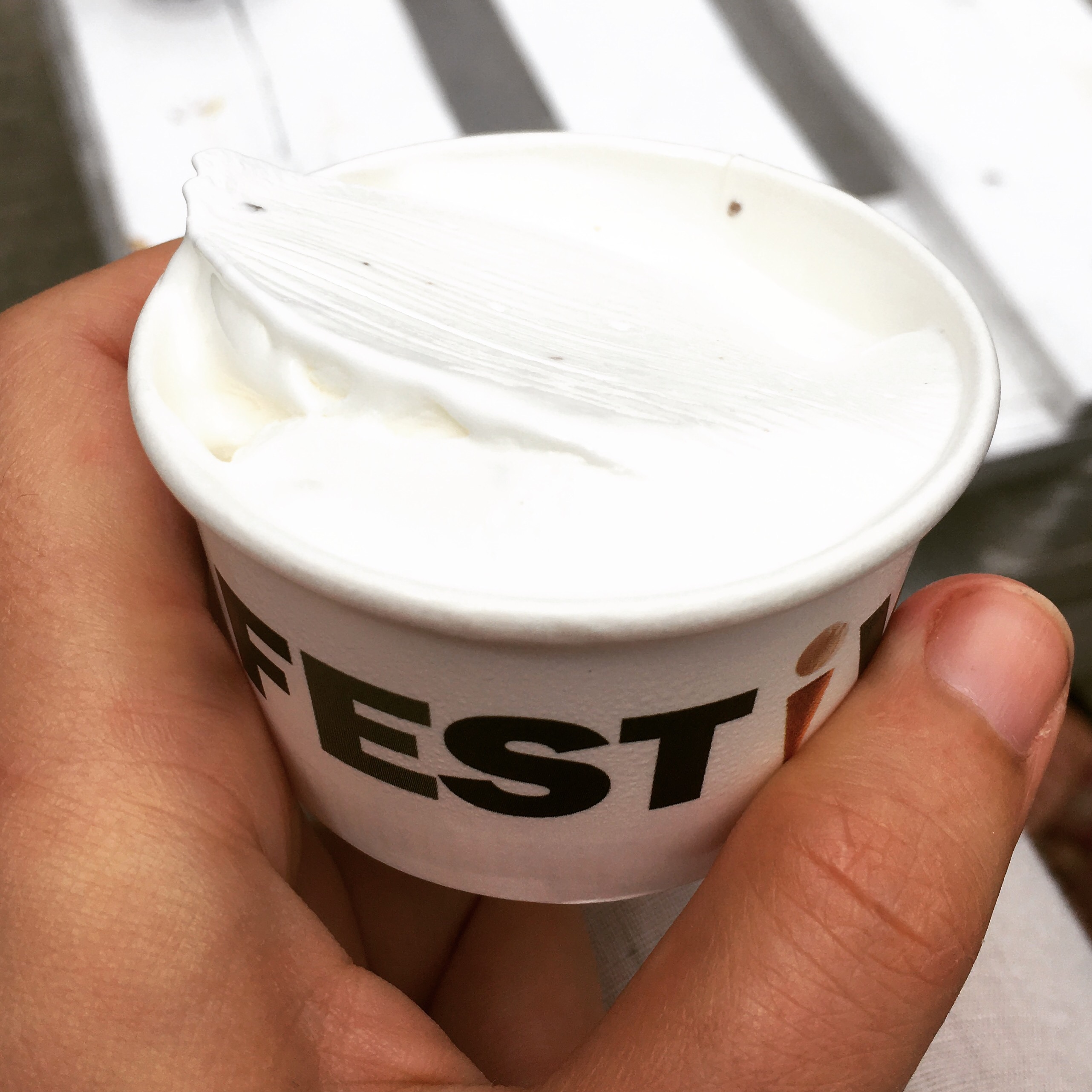 Nummer 8, Buontalenti, eine „Spezialität aus Sahne und Rahm“ von der Florentiner Eisdiele Badliani und benannt nach dem angeblichen Erfinder des Gelato, war skandalöserweise leer (später habe ich über Instagram erfahren, dass nachmittags wieder aufgefüllt wurde, aber da war ich schon lange wieder zuhause in Stars Hollow…). So mussten wir wohl oder übel ein Eis auslassen und gingen direkt zum Trüffeleis von Savitar über. Nicht was wir uns unter Trüffeleis vorstellen, sondern wirklich Eis aus weißen, toskanischen Trüffeln. Eine überraschende und erstmal fremde Mischung aus herzhaftem Trüffelgeschmack (evtl. auch Knoblauch?) und normal-süßem Sahneeis. Nachdem wir uns daran gewöhnt hatten, war das Eis doch erstaunlich lecker und der Hase und ich aßen ohne zu Murren und mit Genuss auf – die anderen hatten in Erwartung des letzten Eisstands ausgesetzt.
