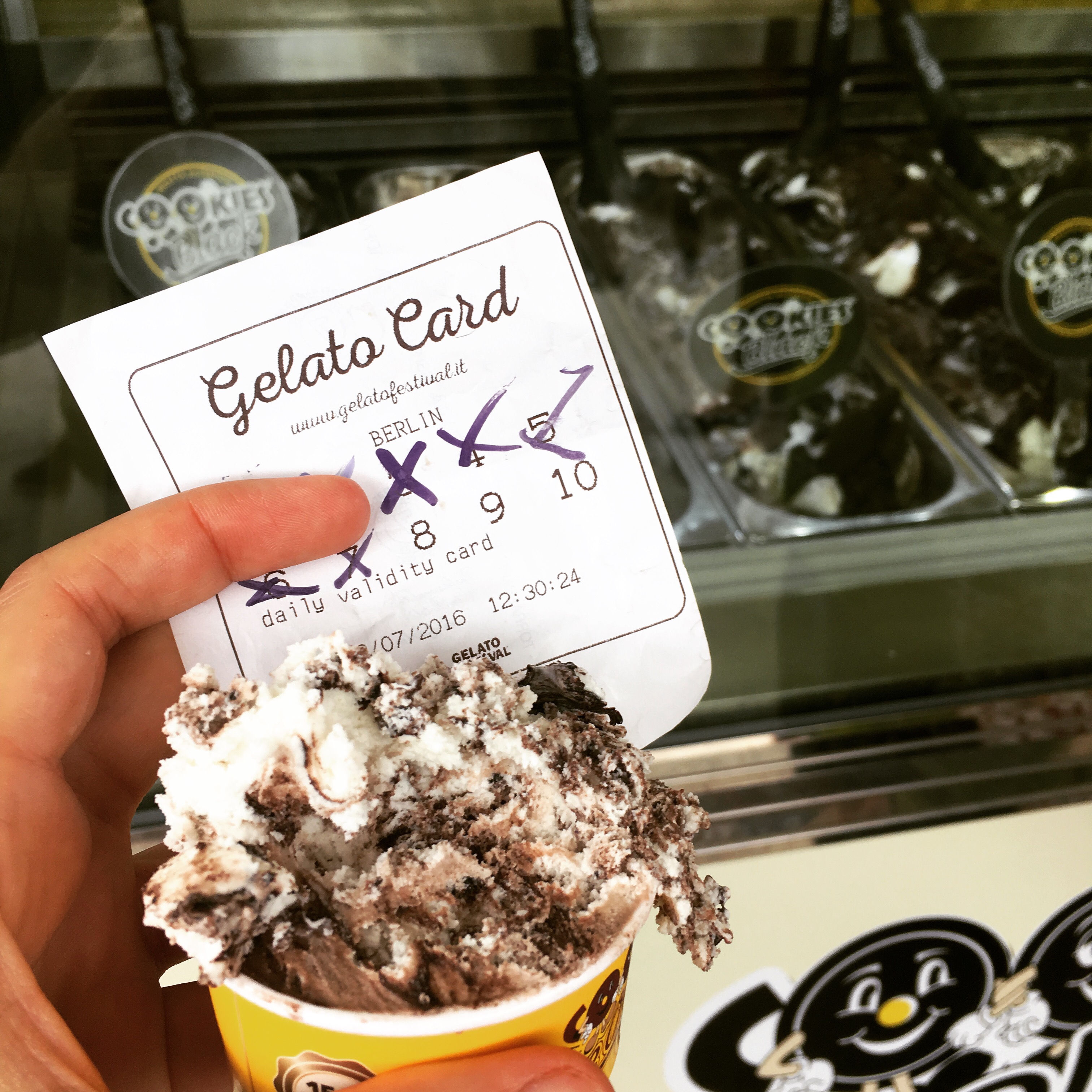 Endlich mal wieder ein Sonntag, an dem ich Blogbares zu berichten habe und auch noch die Zeit habe, das etwas ausführlicher auszuformulieren. Liegt wahrscheinlich auch mit daran, dass ich während der Woche krankheitsbedingt mal wieder sehr wenig erlebt habe, bis auf die Krankenbesuche lieber Freundinnen natürlich. Von denen abgesehen habe ich hauptsächlich geschlafen, gelesen und Gilmore Girls geguckt, so dass ich gar keine Gelegenheit hatte, in Stress zu verfallen. Aber eigentlich soll es hier ja nicht um Stress-, sondern um Eis-Assessment gehen. Derzeit findet nämlich auf dem Gelände der Arena das Gelato Festival statt, bei dem man nach Zahlen des Eintrittspreises an zehn Ständen verschiedene Eiskreationen probieren kann und dann am Ende seinen Favoriten aus den sechs am Wettbewerb teilnehmenden Sorten küren kann. Das Festival tourt durch diverse Städte in Europa, bevor dann die besten Zwei aus jeder Stadt beim großen Finale in Florenz gegeneinander antreten. Eise essen und bewerten? Genau die richtige Veranstaltung für den Hasen und mich!