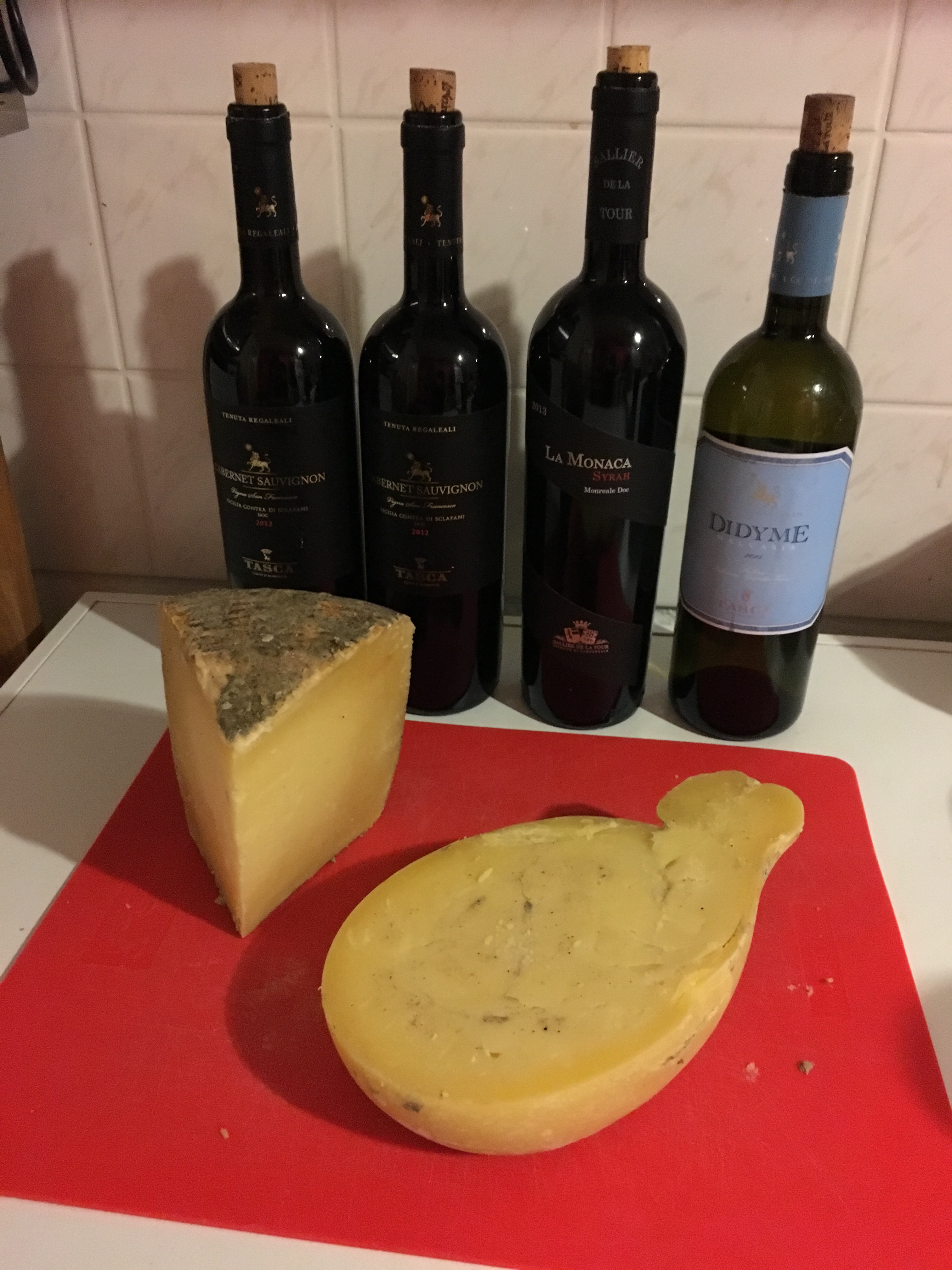 - Pecorino vom Tasca d’Almerita Weingut – 12 Monate gereifter Schafskäse mit dem Rosso del Conte (ein Cuvée aus Nero d’Avola und Perricone), dem „Mercedes“ unter den Tasca Weinen