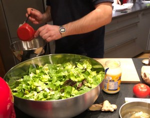 Und jetzt… sitze ich bei Freunden am Küchenthresen, trinke Wein, höre auf das Knacken des Bacons im Ofen und dirigiere den Hasen beim Zubereiten des Dressings für den Caesar Salad. Ein guter letzter Urlaubstag.
