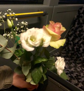 Liebes Tagebuch, heute waren wir nach der Arbeit noch auf der Hochzeitsfeier eines lieben Freundes und Ex-Kollegen, der endlich, endlich seine Jugendliebe geheiratet hat.* Es gab tolles Essen, gute Musik und lustige Leute. Für den Heimweg aus Spandau gab man uns noch Blumen mit – so wurde die Heimfahrt im Bus gleich noch ein Stück glamouröser. Alles Gute, Ihr Zwei, wir freuen uns auf die große Sause im Mai!