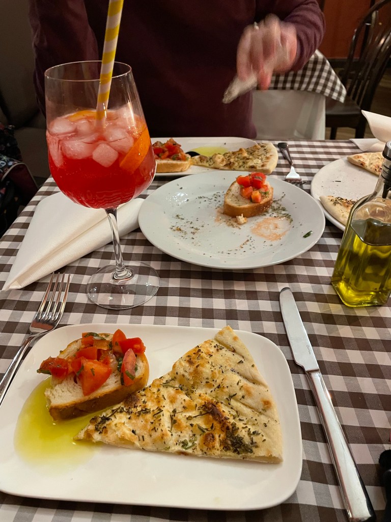 Ich stieg also am Brandenburger Tor direkt in die S-Bahn nach Südberlin und wartete beim Stammitaliener an der Ecke mit einem Campari Amalfi noch ein paar Minuten auf den Liebsten und das Teilzeitkind. Das gehört jetzt jeden zweiten Freitag irgendwie schon zum Ritual. Man kennt uns, man weiß, was mir möchten, wie das Kind heißt und dass ich experimentierfreudig bin. Einer von den Kellnern spricht mit mir immer Italienisch, sicherlich auch, um mich zu erfreuen, aber tatsächlich ist sein Deutsch auch weniger gut, als das des Anderen. Beide sind gute Freunde des Teilzeitkinds und schenken zum Abschied immer „heimlich“ einen Lolli.