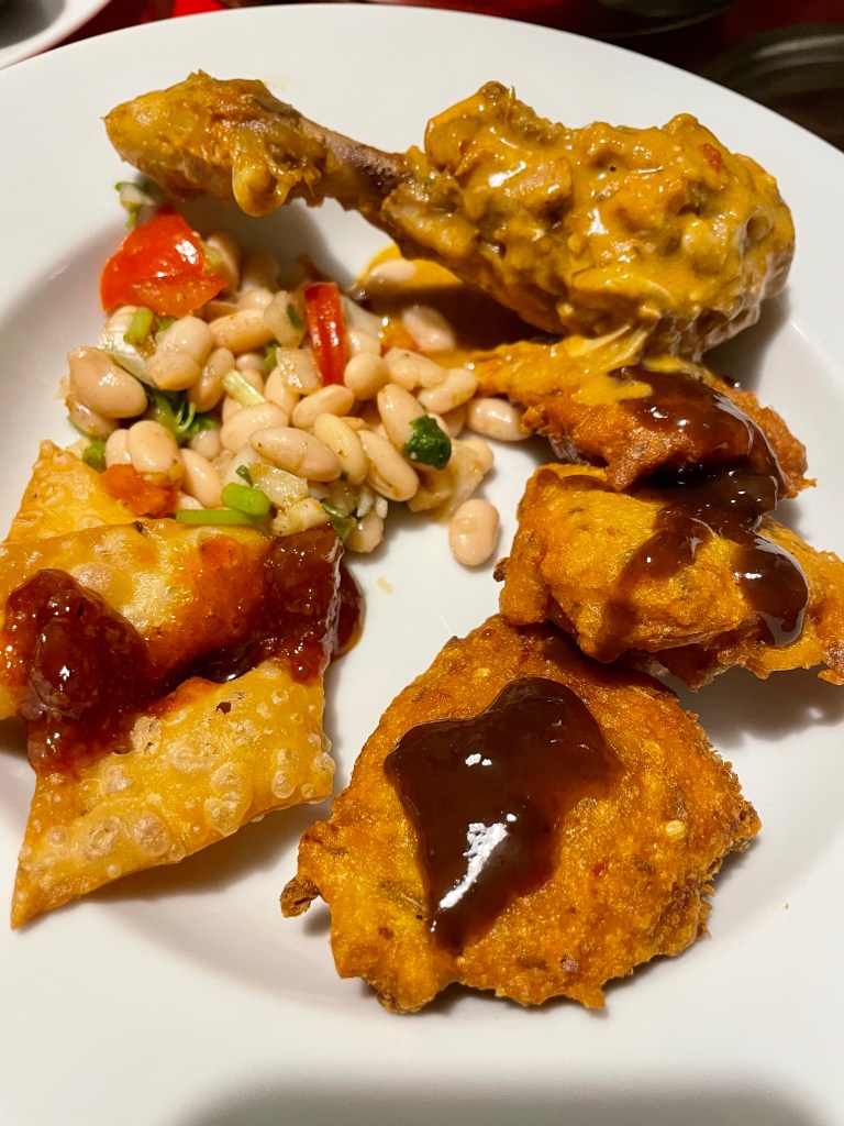 Dann ist Aufbruch – der Liebste und das Teilzeitkind fahren zurück nach Berlin und ich nehme U-Bahn und Tram nach Hause, wo der Mitbewohner bereits seit Stunden in der Küche steht und seine Gäste (ehemalige Kolleg*innen aus Russland und Ägypten) gemeinsam mit Nimbin im Wohnzimmer auf dem Fußboden hocken und mein Siedler-Spiel aufbauen (Noosa sitzt unter meinem Bett). Als es Zeit für Iftar ist, beginnen wir mit dem Essen. Es gibt Hähnchencurry, Pakoras mit Tamarindensauce, Bohnensalat, Papri mit Mangopickle, Obstsalat und selbstgemachte Chapatis, später noch Kunafa und Chai.