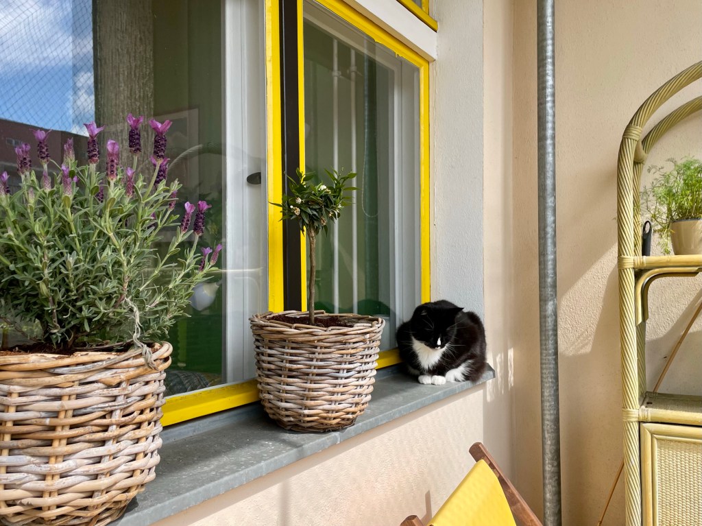 Das grüne da auf dem Brot ist übrigens Pistaziencreme. Beim Frühstücken telefoniere ich mit dem Liebsten, danach habe ich ein paar Hauselfendinge zu erledigen, während Nimbin weiter die Sonne genießt.
