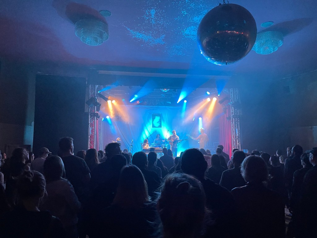 Das Lido ist noch sehr leer. Wir holen uns ein Getränk an der Bar und setzen uns noch raus in den Hof, bis wir die ersten Töne der Vorband Sorry Gilberto hören und aus Höflichkeit und Respekt natürlich reingehen. Die Musik ist schön, aber noch nicht so richtig mitreißend, sie passt aber als Einstimmung sehr gut zur musikalischen Farbe des Abends. Wir holen uns ein zweites Getränk und dann wird es auch schon Zeit für den Haupt-Act, der wir jedes verdammte Mal einfach unfuckingfassbar gut und schön ist. Ich habe darüber glaube ich schon öfter gebloggt. Vom allerallerersten Gig bei einer Gartenparty im Brandenburgischen über Festivalauftritte, prall gefüllte Berliner Clubs und das 10-Jahre-Jubiläumskonzert im ehemaligen DDR-Fernsehstudio vor 5 Jahren bis heute Abend – nie ein enttäuschendes Konzert, immer glücklich strahlende Gesichter, bei mir, beim Rest vom Publikum und bei der Band. Hachz.