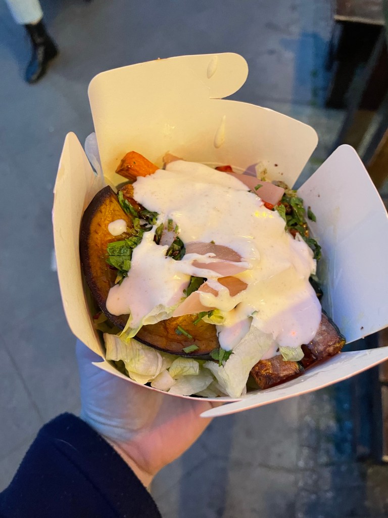 Um 12 Uhr habe ich das erste Meeting des Tages mit einem Kollegen in Potsdam, das für eine halbe Stunde angesetzt ist, aber fast eine ganze dauert. Dann mache ich Mittagspause, in der ich Wäsche abnehme und aufhänge und meine Tasche für den Abend packe, bevor ich mir Stullen mit Hummus mache und dazu Tomaten- und Staudensellerie-Reste verputze. Der Nachmittag ist bestimmt von Meetings – eins mit Paris und zwei global – und dazwischen arbeite ich weiter am Großprojekt und schreibe meinen Wochenbericht.