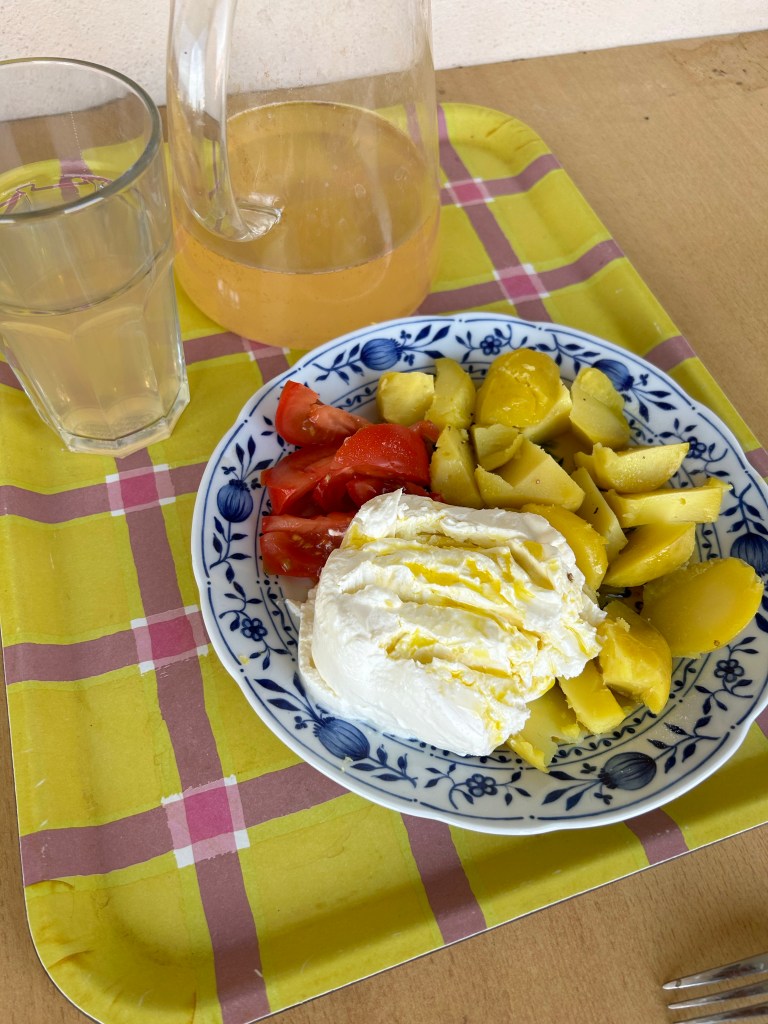 Die Kartoffeln sind dann auch schnell fertig und dazu gibt es Quark mit Leinöl und noch eine Tomate, wieder auf dem Balkon. Beim Essen telefoniere ich mit dem Liebsten und danach muss ich nochmal los. Ich schleppe mein Zelt, meine Isomatte, meinen Schlafsack, meine Picknickdecke und eine Fleece-Decke in einer großen Ikea-Tüte bis in den Wedding (mit Hilfe von S- und U-Bahn), und lege sie dort in den Bulli einer Bekannten, die auch zum Immergut fährt und sie netterweise mitnimmt. So habe ich dann am Freitag nur meinen Rucksack zu transportieren, das bekomme ich hin. Vor Covid hatte ich einfach immer den Rucksack auf dem Rücken und den Rest in der Hand, aber das ist im jetzigen Zustand unrealistisch bis wahnsinnig.