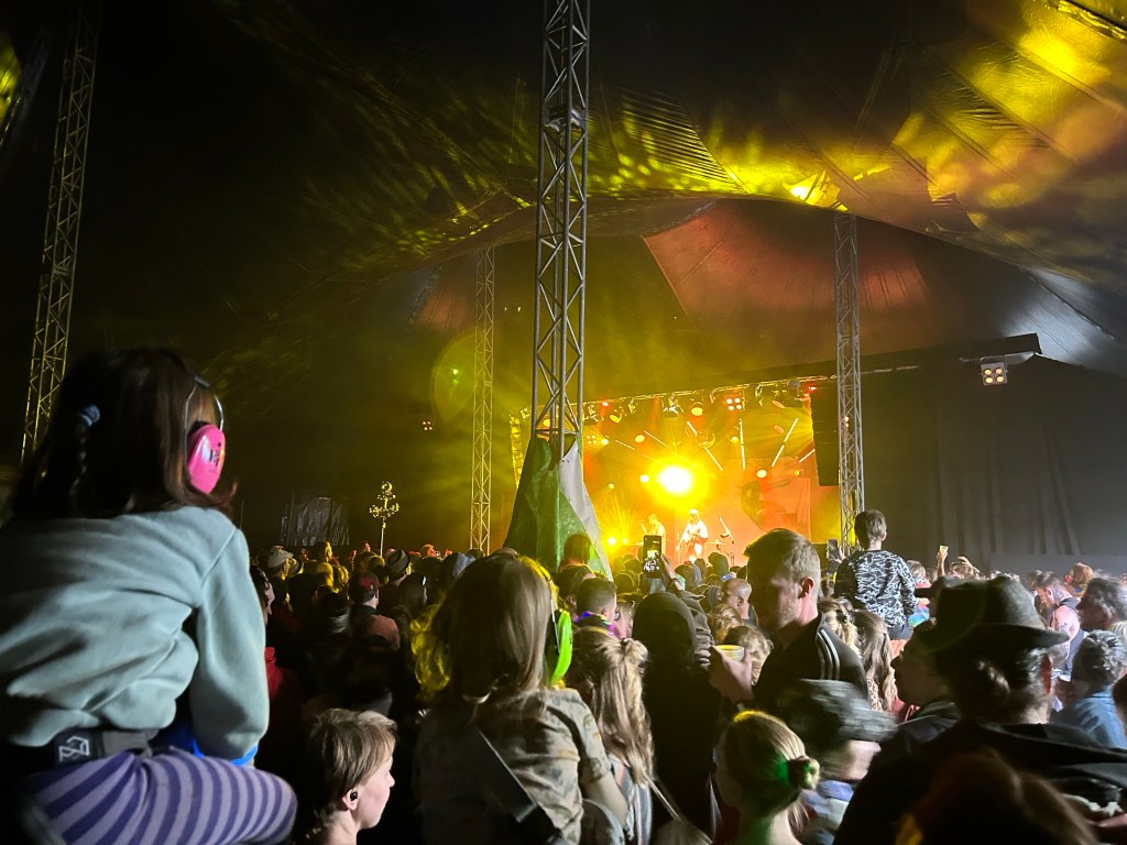 Dann geht es zu Dilla auf die Mainstage, wo ich insgesamt drei weitere Bekannte treffe. Hinterher spielen John Moods im Zelt und das ist jetzt der erste Act, der mir so gar nicht zusagt. Der Vibe erinnert mich an eine 80er-Jahre-Softrock-Band, die auf Hochzeiten spielt, aber dabei aussieht wie eine 70er-Jahre-Hippie-Rockband. Einige Songs fangen vielversprechend an, versanden dann aber zu Brei, bevor sie richtig loslegen. Das Zelt ist dementsprechend relativ leer und uninspiriert, aber draußen ist es inzwischen dunkel und kalt und so bleibe ich trotzdem drinnen.