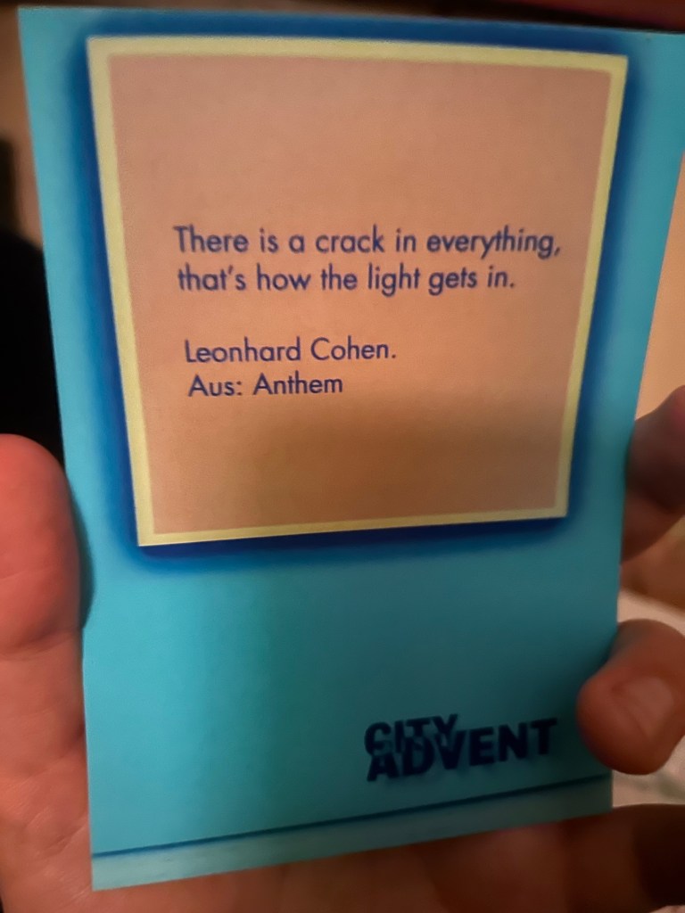 Wir verabschieden uns und der Liebste und ich nehmen angesichts der ganzen zu schleppenden Geschenke (er hat ja auch noch die mitgebracht, die ich schon um Mitternacht auspacken durfte) ein Taxi zu mir nach Hause. Dort werden wir vom Mitbewohner und den Katzen willkommen geheißen. Wir nehmen uns noch ein Kaltgetränk (der Rest Weißwein von Sonntag für den Liebsten, Blaubeer-Salbei-Limo für mich) und setzen uns auf den dunklen Balkon. Die Katzen bekuscheln mich ausgiebig, während ich das Päckchen von den Liebsteneltern aufmache, das neben einem Buch noch diese Grußkarte enthält: