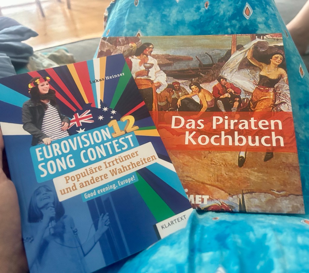Dort wird dann erstmal kurz ein bisschen ausgeruht und dann geht es los mit dem Kochen. Über den Tag entstehen ein Nudelsalat und eine Tom Kha Gung und nebenbei wird immer weiter aufgeräumt und geputzt. Dann ist irgendwann alles soweit fertig, der Liebste geht noch eine Runde zocken, ich liege auf dem Sofa und gucke TikTok und das Teilzeitkind geht draußen spielen. Kurz nach 18 Uhr kommen die ersten Gäste – des Liebsten Schwester, seine Cousine und deren Freund. Der Liebste bekommt Gratulationen und Geburtstagsgeschenke und mein Geburtstagsgeschenkbücherstapel wächst auch nochmal um zwei.