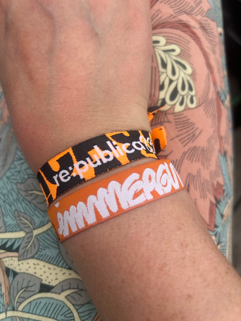Wie fast immer, wenn ich mir den Wecker früher stelle, wache ich noch viel früher auf. Dieses Mal eine Mischung aus aktiven Katzen und Vorfreude/Aufregung. Es kratzt noch ein wenig im Hals, aber jetzt bin ich wild entschlossen, in die Arena zur re:publica zu fahren und Spoiler: Ich halte den Tag gut durch, huste nie und niese nur einmal. Richtige Entscheidung. Ich absolviere also meine Morgenroutine wie üblich, esse ein schnelles Frühstück mit Pistaziencremetoast und Banane, packe mir meine Utensilien für den Tag in den neuen Immergut-Beutel (und vergesse dabei, die über Nacht geladene Powerbank einzustecken, ich Dusseline.
