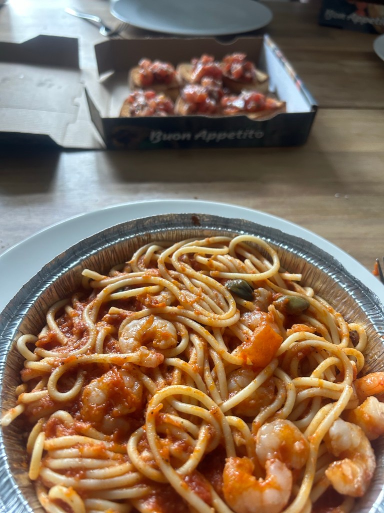 Dann laufen wir zu einem Italiener in der Nähe (zwischendurch habe ich mein Schrittziel erreicht) und bestellen Dinge zum Mitnehmen für das Abendessen. Während wir warten, trinkt das Teilzeitkind eine Apfelschorle. Wieder zuhause erwartet uns der Liebste bereits. Es gibt Bruschetta für alle und dann für mich Spaghetti mit Tomatensauce, Krabben und Kapern. Der Liebste und das Teilzeitkind teilen sich eine Pasta mit Sahnesauce, Pilzen und Filetspitzen und eine Pizza Margherita. Beim Essen erzählt das Teilzeitkind von dem Video und fragt, ob Michael Jackson berühmt ist. Der Liebste schimpft, weil es mich nicht gefragt hat, bevor es YouTube geguckt hat und belehrt mich offiziell, dass vorher gefragt werden muss. Ich nicke eifrig und beflissen.
