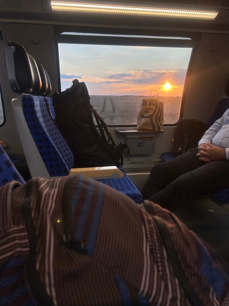 Irgendwann reicht es mit dem Lesen, dann mache ich noch ein wenig Tschechisch in der App und hinterher Kreuzworträtsel. Ab Neustrelitz ist der Zug deutlich leerer, ich habe den Zweierplatz für mich, höre Musik und gucke in die Landschaft.