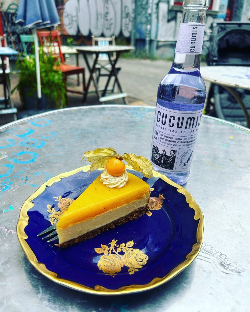 Mit der S-Bahn fahre ich zurück in die KTV und laufe dann zum Stammcafé. Inzwischen habe ich richtig Hunger. Leider ist mein Freund heute nicht in Dienst, sonst bliebe ich hier wahrscheinlich wie sonst viele Stunden. Stattdessen suche ich mir nacheinander zwei Stücken Kuchen aus (die einzigen beiden histaminarmen), trinke eine Limonade, sitze an einem Tisch draußen und gucke in die Gegend. Eine Bekannte läuft mit ihren beiden größeren Kindern vorbei, ich sehe sie aber zu spät und sie mich gar nicht – wir schreiben uns dazu später noch auf Instagram. Als ich gerade aufbrechen möchte, kommt eine weitere Bekannte mit ihrer Tochter gerade an und holt sich einen Kaffee und wir quatschen einen Moment.