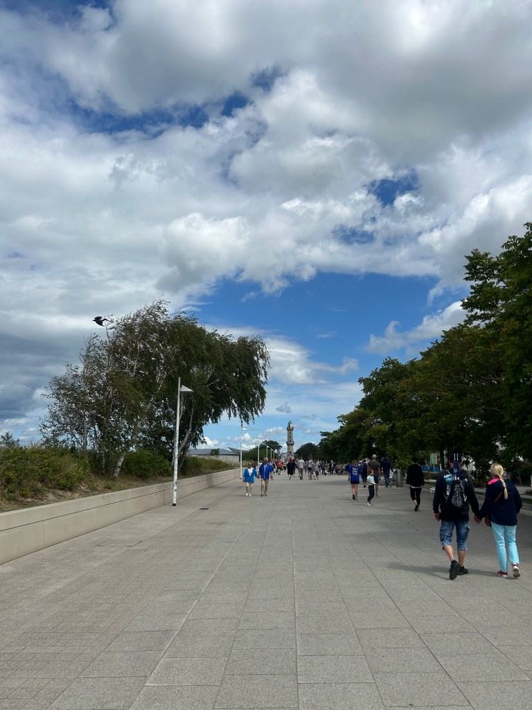 Auf dem gleichen Mäuerchen wie immer sitzend entsande ich meine Füße und ziehe wieder Schuhe an. Dann geht es die Promenade entlang zum Leuchtturm und zum Teepott und dann den Strom entlang wieder zurück zum Bahnhof.