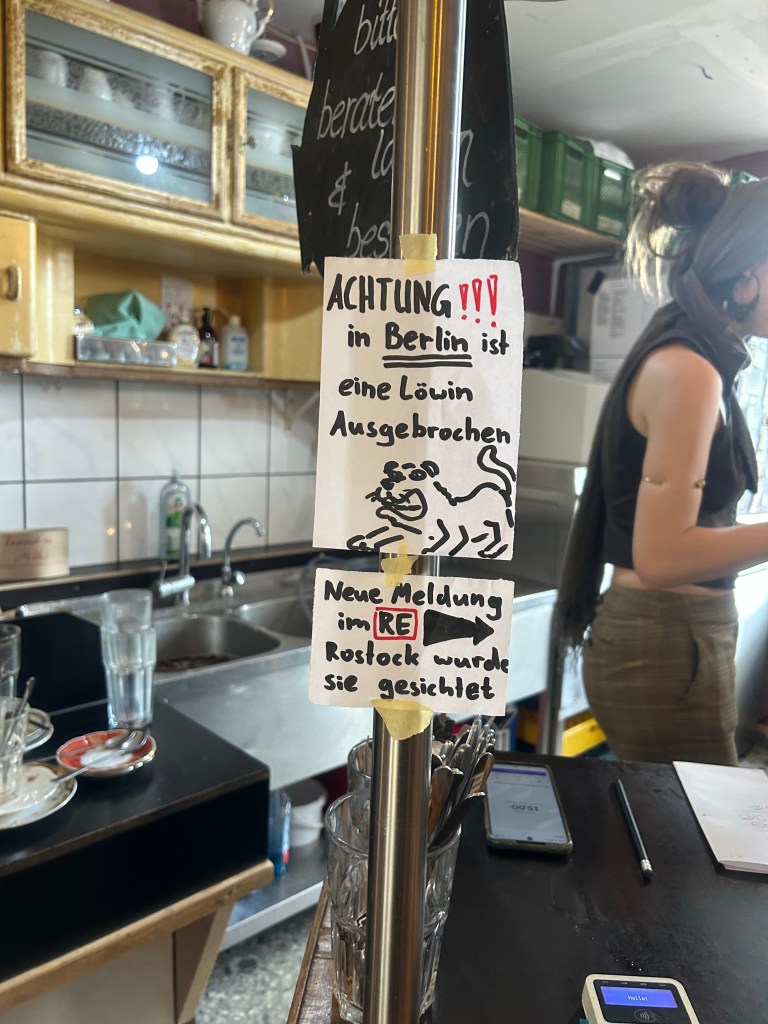 Dann bin ich wieder in „meinem“ Rostock und vor allem in der KTV. Hier habe ich den Großteil meiner Unizeit über gelebt, hier hat meine Familie viele Jahre lang gelebt, der Großteil meiner Rostocker Freund*innen auch und das kulturelle und soziale Leben spielte und spielt sich vor allem hier ab. Ich spaziere gemütlich Richtung S-Bahn, freue mich an den bunten Häusern, schaue am Stammcafé vorbei, das zwar noch nicht offen hat, aber da der Besitzer ein guter Freund ist, hätte ich auch vorher schon ein Getränk und einen Schwatz bekommen, wenn er denn schon da wäre. Ist aber noch alles zu. Stattdessen treffe ich auf einen anderen Freund, der sein Büro nebenan hat, und sage kurz „Hallo“.