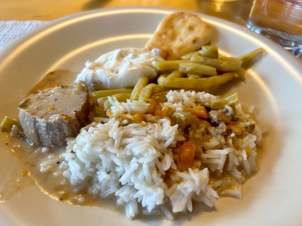 Zuhause gibt es dann die Reste der letzten beiden Abendessen zum Abendbrot, dazu noch frisch gekauftes Knoblauchbrot, Naan und Tsatsiki.