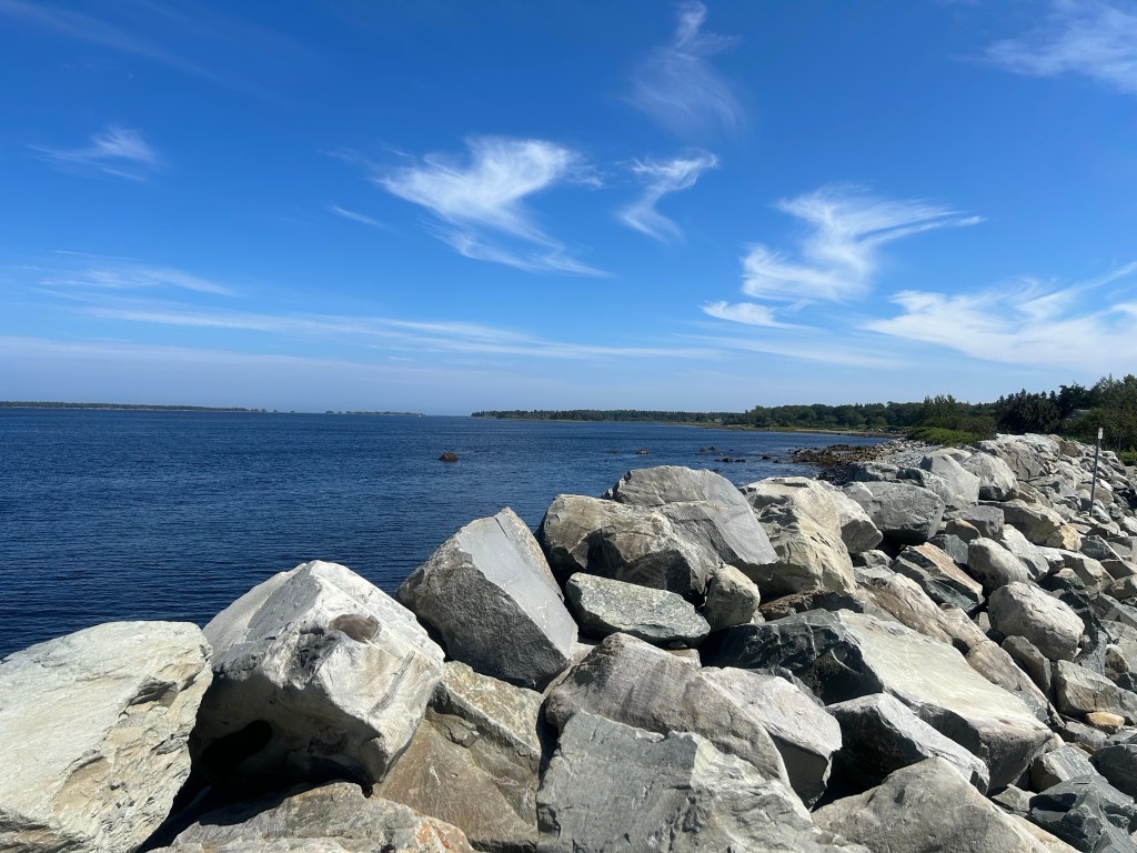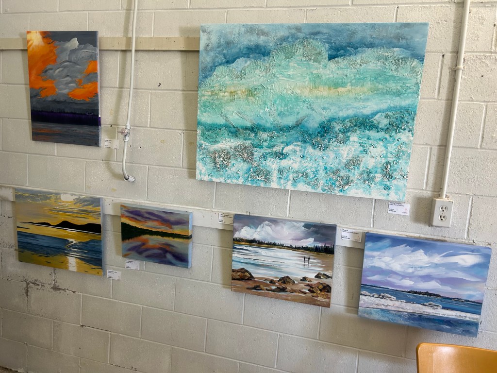 Am frühen Nachmittag fahren wir hinüber in das Dorf auf der anderen Seite der Bucht. Hier findet dieses Wochenende eine Arts & Crafts Ausstellung von Künstler*innen aus der Gegend statt. Wir haben ja bei den meisten kleinen Dörfchen hier immer dieses „Stars Hollow“-Gefühl – die Landschaft und Architektur sind in Neuschottland ähnlich wie in Neuengland und dann ist jedes winzige Nest plötzlich Stars Hollow.