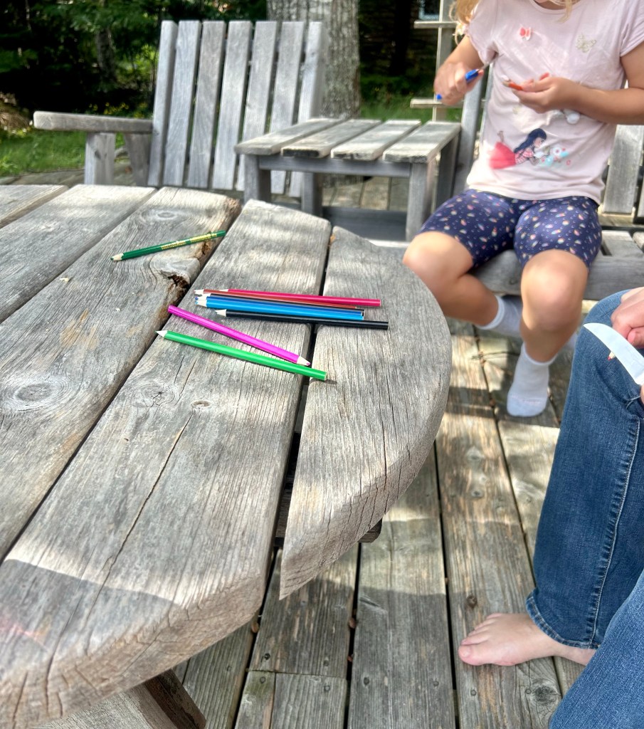 Der Nachmittag wird dann wirklich sehr beschaulich, mit Lesen, Mittagsschläfchen, Buntstifte mit dem Messer anspitzen…