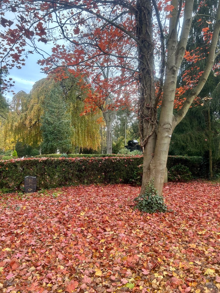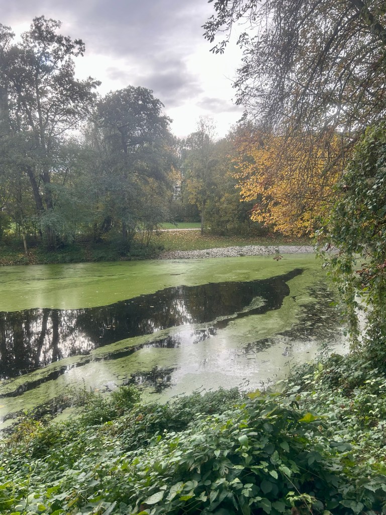 Ich laufe durch den Park beim Liebsten um die Ecke, dann am Kanal entlang, durch einen weiteren Park, über einen Friedhof, noch weiter bis zu einem Naturpark, für den man einen Euro Einritt zahlen soll, was ich auch tue. Nebenbei höre ich Podcasts und freue mich über das Herbstlaub.