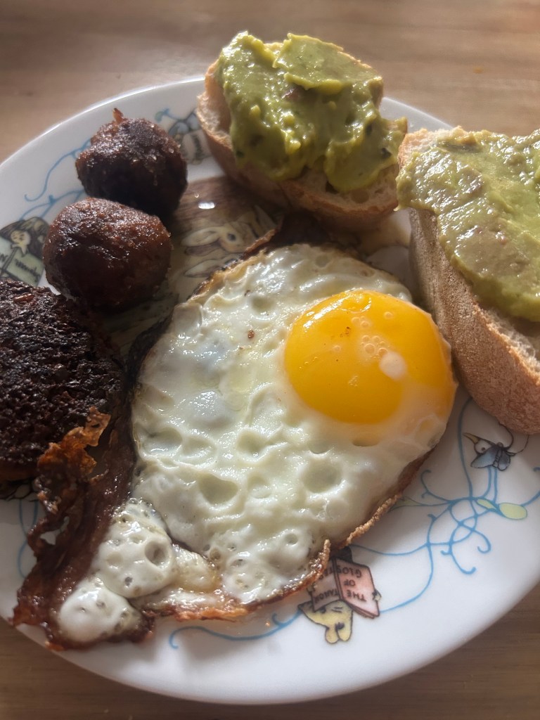 Ich wache den vierten Morgen in Folge zu früh auf, wegen Geräuschen, die außerhalb meines Einflussbereichs liegen und vor dem Liebsten, der aber sobald er aufmacht sofort aufsteht und Kaffee macht. Wir bleiben weniger entspannt und gemütlich liegen als auch schon am Wochenende, denn heute ist der letzte Tag vor einem sonntäglichen Silvester und die Planung der zu noch erledigen Einkäufe treibt den Liebsten um und aus dem Bett. Also quäle ich mich auch hinaus und wir gehen als erstes gemeinsam in den Supermarkt, kaufen, was uns einfällt und konferieren nebenbei über Signal mit der Partygang, was noch gebraucht werden könnte. Wieder zuhause gibt es Frühstück mit Spiegelei, Falafel, veganen Köttbullar, Avocado-Aufsteich auf Baguette und viel Obst.