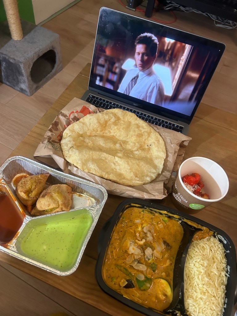 Wieder drinnen packe ich meinen Rucksack aus, beziehe das Bett frisch und begebe mich dann aufs Sofa. Ich habe noch nicht gebloggt und noch nicht Italienisch gemacht, das hole ich jetzt nach. Dann bestelle ich mir mein Neujahrsessen – Samosas, Paneer Korma, Bhatura und gebackene Litschis mit Marzipanfüllung und gucke „The West Wing“.
