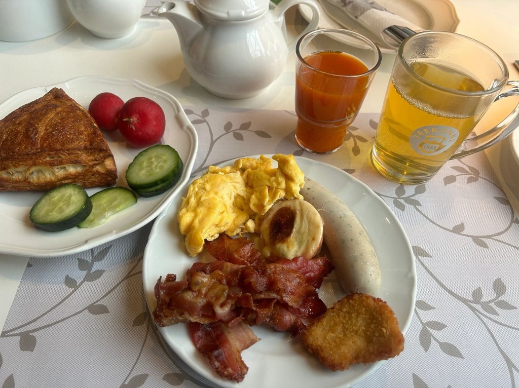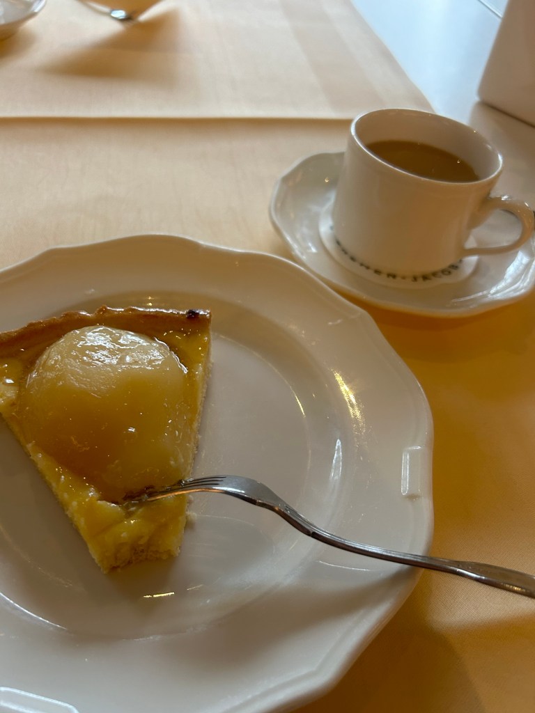 Es gilt, gemütlich das Hotelfrühstück auszukosten und mit der Liebstenschwesterfamilie zu plaudern, bis ich dann zurück aufs Zimmer und zur Arbeit muss – und außerdem so viel zu essen, dass es bis zum Kuchen nachher reicht, weil ich meine Mittagspause heute wieder erst um 15 Uhr nehme und zwischendurch keine Gelegenheit habe, an Essen zu kommen. Das Büffet erfüllt die Voraussetzungen (nach dem obigen Gang kommt noch ein Süßer) und die anderen trudeln auch nach und nach zum Frühstück ein, so dass es noch ganz gemütlich wird.