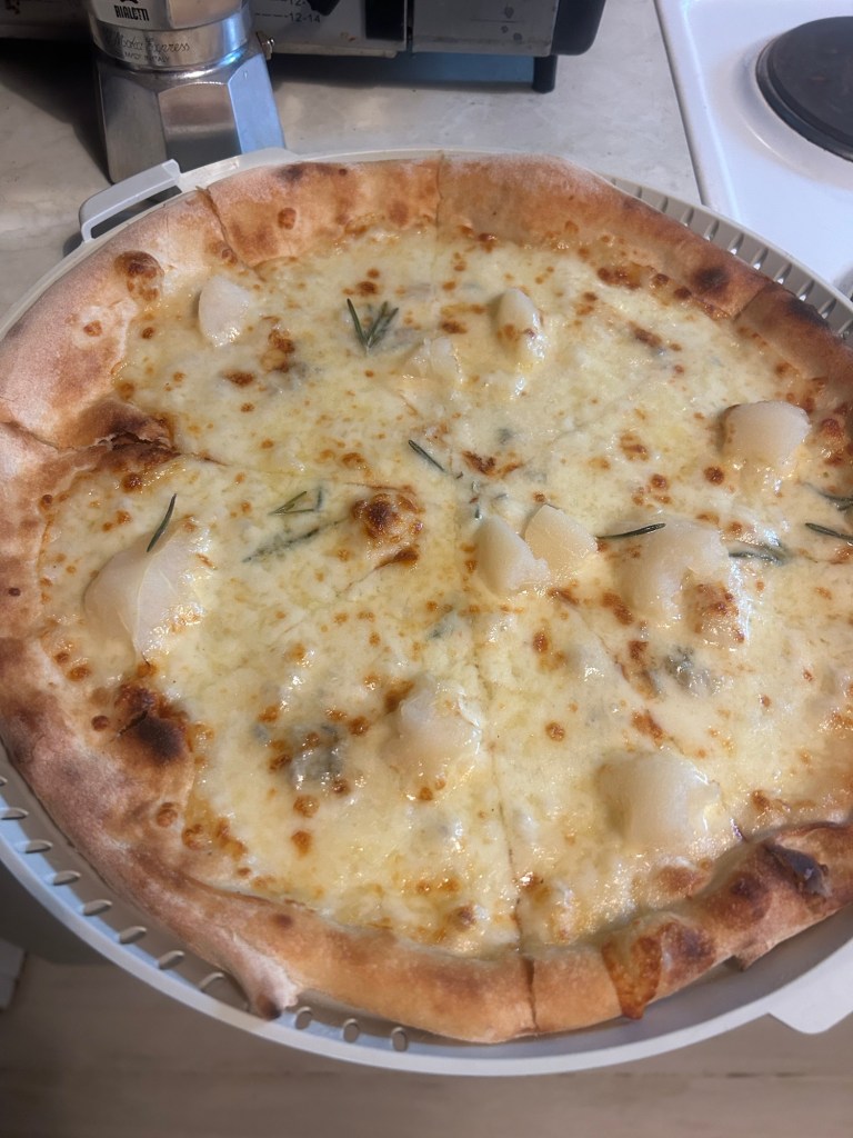 Jetzt habe ich kurz Gelegenheit, mit dem Mitbewohner zu quatschen, mein Paket auszupacken (Crowdfarming-Avocados, -Mandarinen und -Orangen, jede Menge und das im Bio-Qualität und für unter 20 € inkl. Versand aus Spanien), dem Ex-Mitbewohner Bescheid zu sagen, dass seine neue BahnCard da ist, und mir eine Pizza zu bestellen – Birne, Rosmarin und Gorgonzola – ich lasse es histamintechnisch drauf ankommen (Anmerkung am nächsten Morgen: zu Recht, keine Probleme). Dann packe ich mein Gepäck aus, mache Italienisch und schon ist die Pizza da.