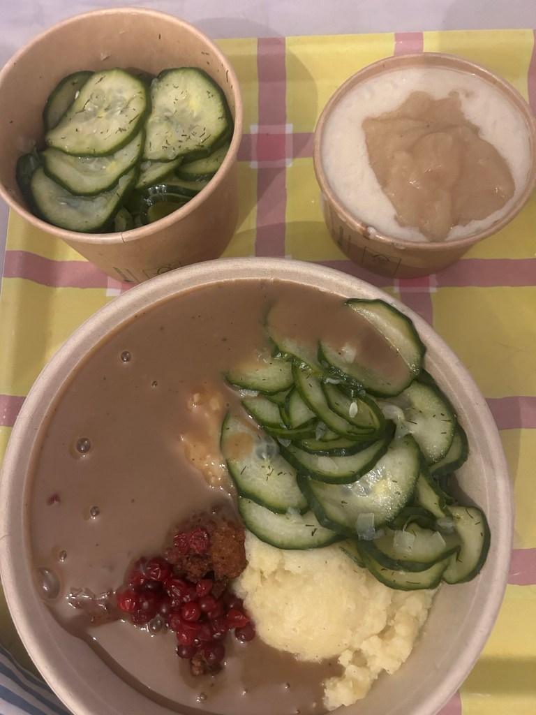 Danach bastle ich weiter an zwei Texten herum, einer auf Englisch, einer auf Deutsch, helfe der Kollegin in Frankreich mit einem technischen Problem im Backend, mache ein Update auf unserer Firmenwebseite und dann ist erstmal nichts wirklich Dringendes mehr zu tun. Ich beschäftige mich eine Weile mit dem Thema „Essen“ und beschließe schließlich, wieder etwas zu bestellen. Heute mag ich nicht aus dem Bett. Es werden dann Köttbullar mit Gurkensalat und zum Nachtisch Milchreis mit Apfelmus – alles in vegan.