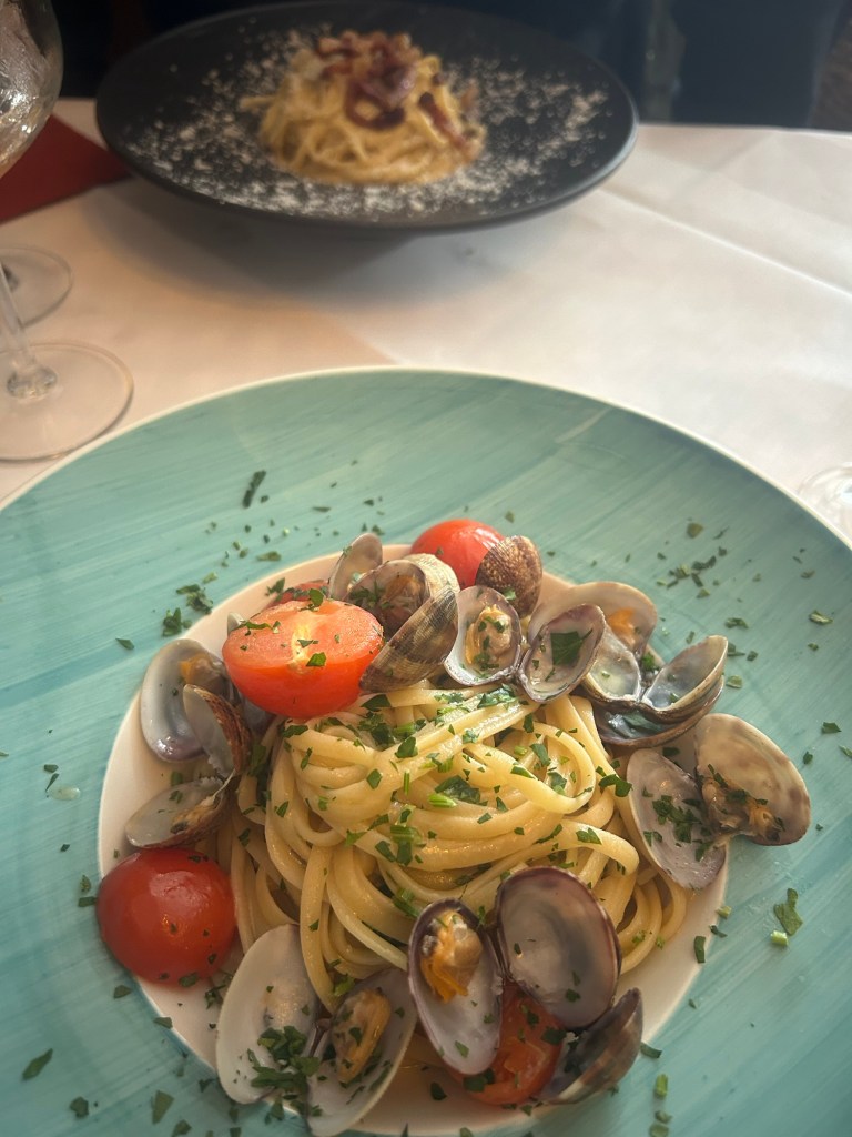 Ich finde ein Haar in den Nudeln und eine noch verschlossene, aber nicht raussortierte Muschel, aber das tut dem Geschmack keinen Abbruch und ich bin sehr zufrieden mit dem allem. Wir sparen uns dann Dessert, Espresso oder Digestif, denn der Liebste hat noch einiges vor. Ich bringe ihn dafür zur U-Bahn und spaziere dann mit Podcast auf den Ohren nach Hause. Dort gibt es dann noch Nachtisch, der mich geradewegs in die Siesta geleitet – mit Tiefschlaf.