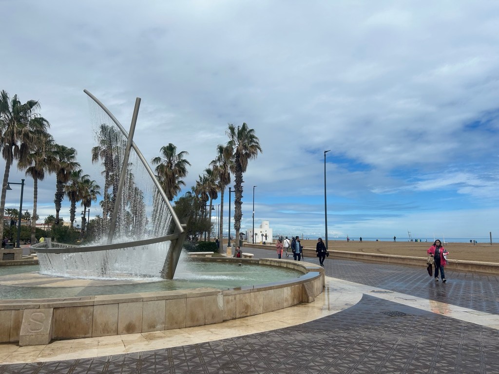 Das Agua de Valencia schmeckt, aber weniger aromatisch als gestern Abend. Dazu gibt es valenzianische Tomaten mit Thunfischbauch, Salat, Jalapeños, Zwiebeln und Thunfischrogen und Tellinas mit einem Kräuter-Knoblauch-Öl-Dip. Beides sehr lecker – die Muscheln habe ich hier schon beim Vorbeigehen an diversen Bars gesehen und muss sie unbedingt ausprobieren. Während ich esse kommen die ersten Tropfen runter. Mist. Ich bleibe erst noch hartnäckig sitzen und flüchte mich dann nach dem Essen mit einem Getränk unter eine Markise, als dort ein Tisch frei wird. Jetzt regnet es sich ein.