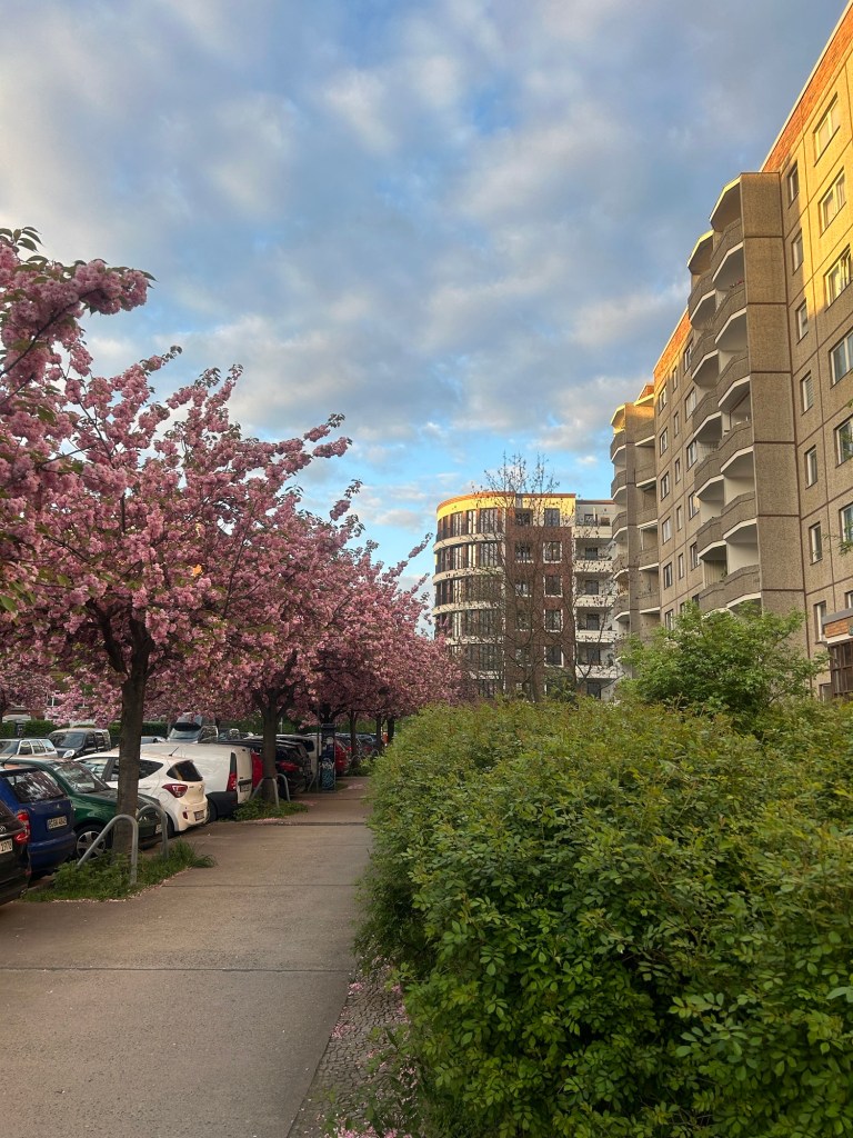 Nach dem Sport geht es raus in die Stadtnatur – das Schrittziel ist heute noch weit entfernt. Ich laufe eine Stunde draußen herum – durch die Hinterhofgärten, die schon verblühte Magnolienstraße, am Kiezteich entlang, unter Kirschblüten hindurch, durch den Park, weiter unter Bäumen, über den Spielplatz und wieder zurück. Ganz am Ende wähle ich mich nebenbei schon in das Webinar vom Adulting-Projekt ein, das um 20 Uhr startet, als ich gerade wieder die Treppen hochlaufe. Ich höre zu und absolviere meinen Redeanteil dann, während ich mir Abendbrot mache – die erste Pasta seit 26 Tagen laut den Fotos in meinem Handy. Was zwei Wochen Spanien so mit einem machen. Schlimm.