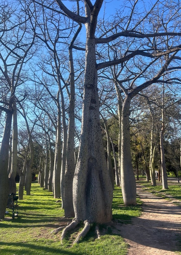 Ich mache dann schon um 17:30 Feierabend, denn ich habe noch große Pläne. Bei schönstem Wetter laufe ich einmal fast komplett durch den Valencia durchziehenden Park (nebenbei Telefonat mit dem Liebsten und die erste halbe Stunde noch letzte Absprachen mit dem Team im Chat) bis zu einem Baobab-Wäldchen.