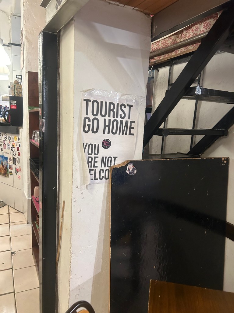 Zum Essen geht es dann zu einem linken Kulturverein, der seinen Mitgliedern (ich trete schnell bei, kostet nichts), ein veganes Überraschungsmenü anbietet. Wasser und Tee sind umsonst und am Ende zahlt man, was man denkt und sich leisten kann.
