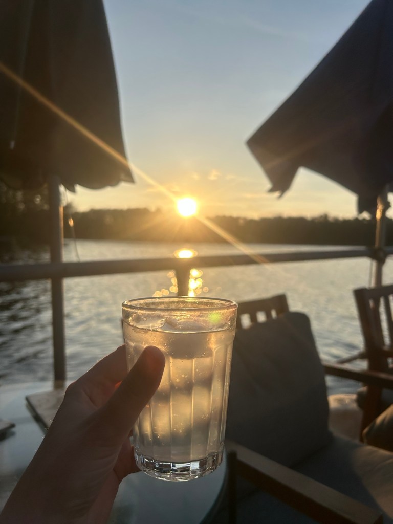 Und nach dem Grillen geht es dann natürlich wieder ans Wasser, pünktlich zum Sonnenuntergang mit Gin Tonic als Sundowner.