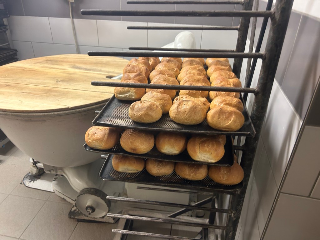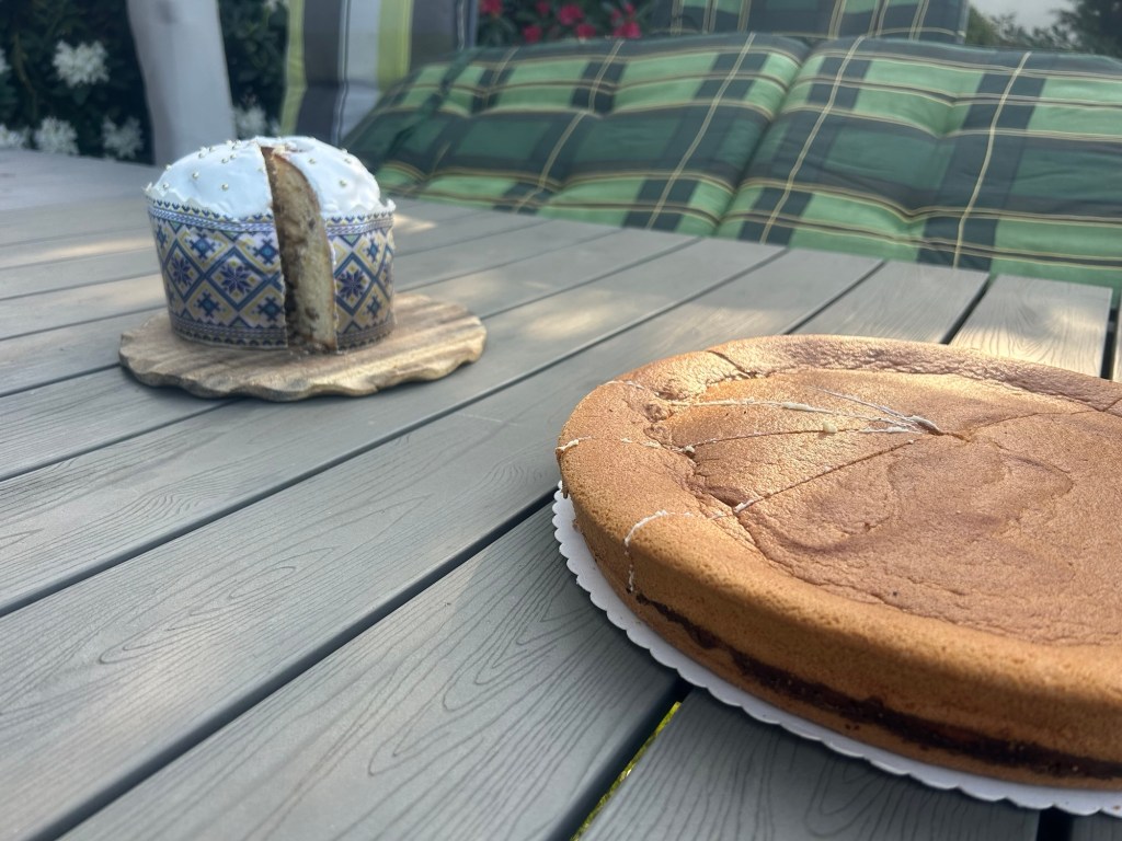 Als ich ankomme, ist aber erstmal Zeit für Kaffee und Kuchen, als der Bäcker seinen Mittagsschlaf beendet. Es gibt ukrainische Paschka und sächsische Eierschecke, beides sehr lecker.