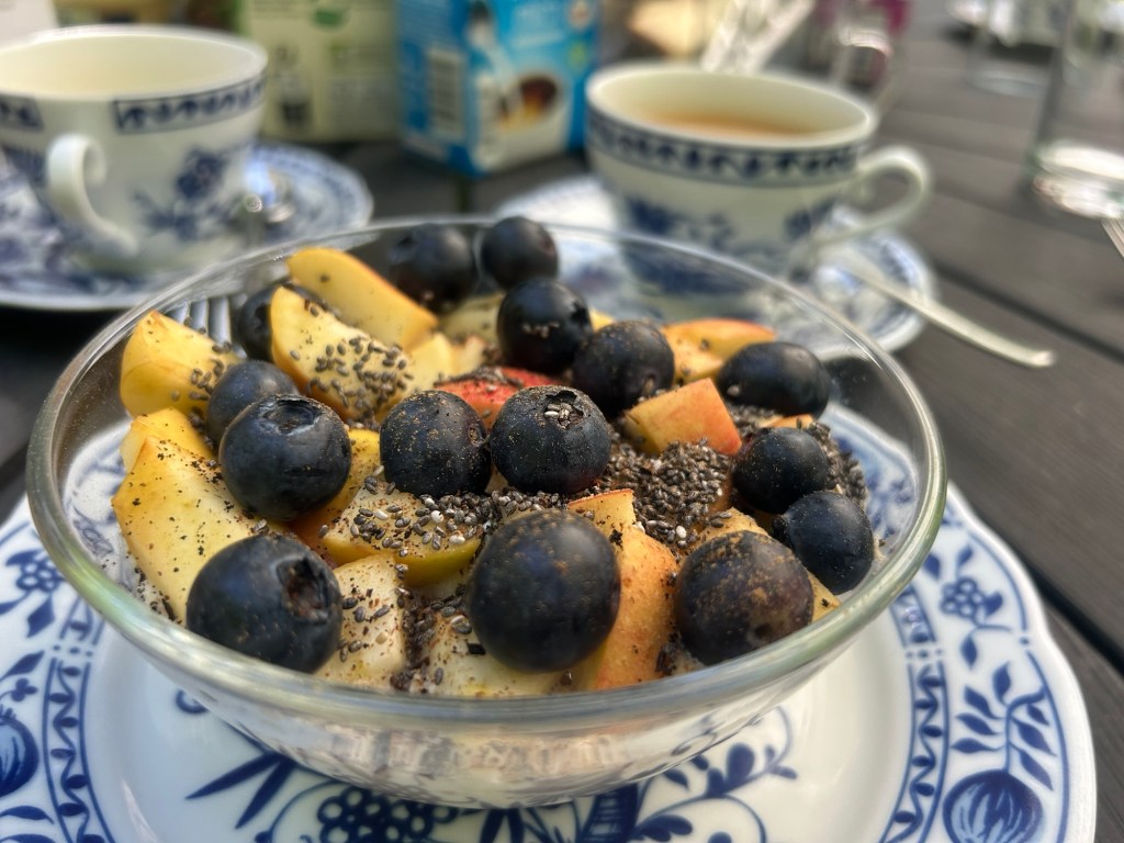 Als sich alle aus ihren Betten geschält haben, gibt es eine große Frühstücksrunde zu acht mit Müsli, Brötchen, selbst gemachten Marmeladen (eigentlich Konfitüren) und den Resten vom traditionellen Hexenbrennen-Zwiebelkuchen. Dazu Gespräche über das Wetter, die Pflanzen, die Vögel, die Katzen der Umgebung (past and present), Bürokratie, Inklusion…