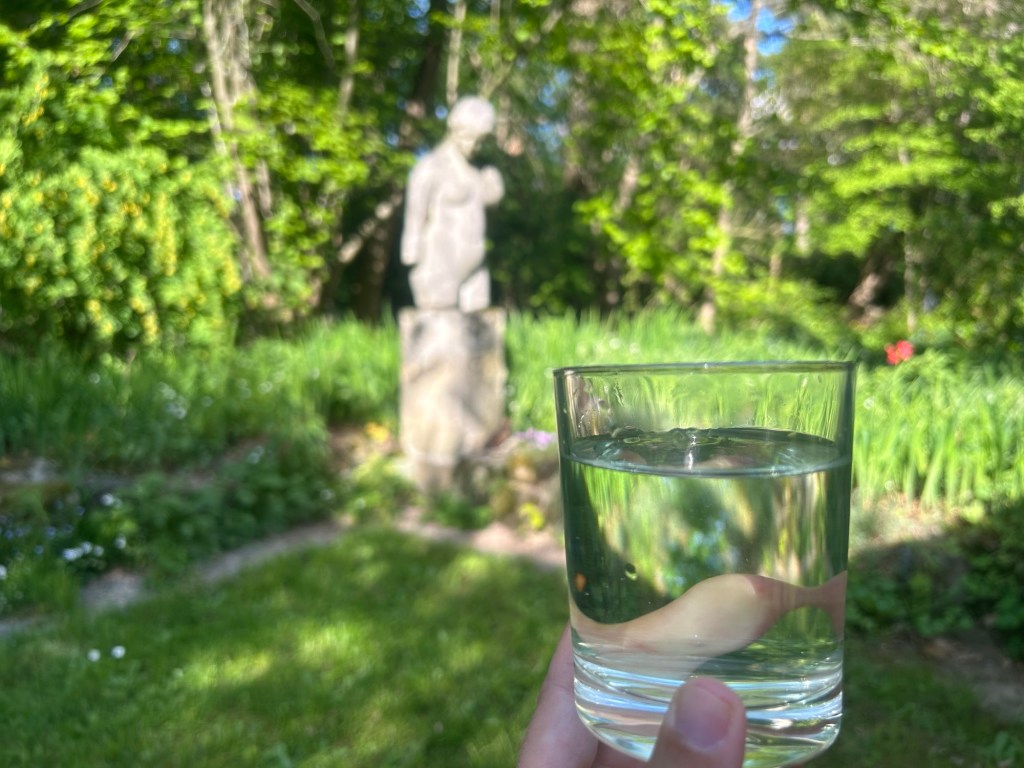 Später nutze ich die Gelegenheit einer ebenerdigen Dusche und betreibe ausführliche Körperpflege, bevor ich mich frisch anziehe und meinen Kram zusammenpacke. Dann gibt es noch selbstgemachten Waldmeistersirup zu verkosten (mit etwas grüner Lebensmittelfarbe drin, damit man von weitem erkennt, was in der Flasche ist), bevor ich mich verabschiede, verspreche bald wieder zu kommen, und zurück zu meinen eigenen Katzen fahre.