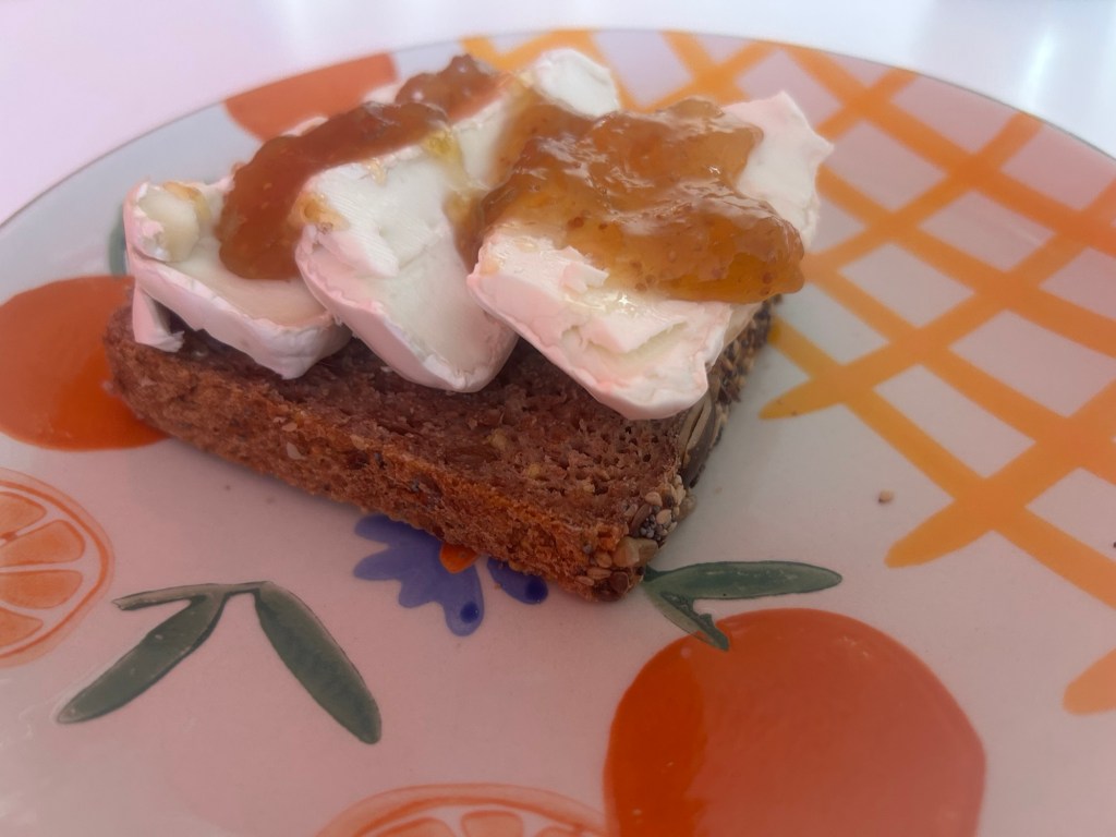 Diesen Montagmorgen wird die Routine ordentlich durcheinandergewürfelt, weil der Wecker nämlich erstens überhaupt und zweitens schon halb 7 klingelt. Und das, wo ich grad wieder unruhiger schlafe, denn als Linksschläferin mit Schulter, Ellbogen und Fuß kaputt, jeweils links, hat man es nicht leicht. Trotzdem werde ich erstaunlich schnell wach, da hilft der Termin im Draußen. Vorher aber noch ein Brot mit Büffel-Weichkäse und Feigenmarmelade und ein Matcha Latte für unterwegs.
