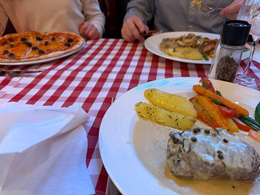 Dort angekommen werfe ich alles ab, versorge meine rechte Ferse mit einem Blasenpflaster (Docs mit dünnen Socken…) und lasse mir dabei vom aufgeregten Teilzeitkind, das gerade aus Gummibärchen und Speisestärke nach einem Rezept aus dem Internet „Bubble-Tea-Perlen“ herstellt, die spannendsten Erlebnisse des Schultags erzählen. Keines davon hat mit Unterrichtsinhalten zu tun, alle hingegen mit sozialen Beziehungen – zu Freund*innen, zwischen Mitschüler*innen und Lehrer*innen… Fühle ich sehr. Für halb 6 hat das Teilzeitkind uns einen Tisch beim Stammitaliener reserviert und da gehen wir dann zu dritt auch direkt hin.