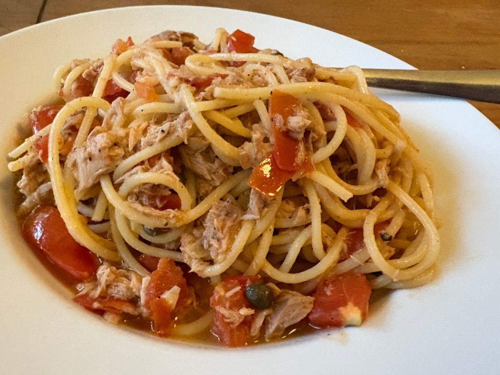 Hinterher mache ich mich schnell auf den Heimweg, keine Zeit für Emotionalitäten oder um noch zu tanzen. Der Fuß tut außerdem immer noch weh. Unterwegs kaufe ich letzte Dinge fürs Immergut ein, morgen ist ja Feiertag) und dann geht es nach Hause. Ich versorge die Katzen, koche Pasta mit Tomaten und Thunfisch und telefoniere mit dem Liebsten.