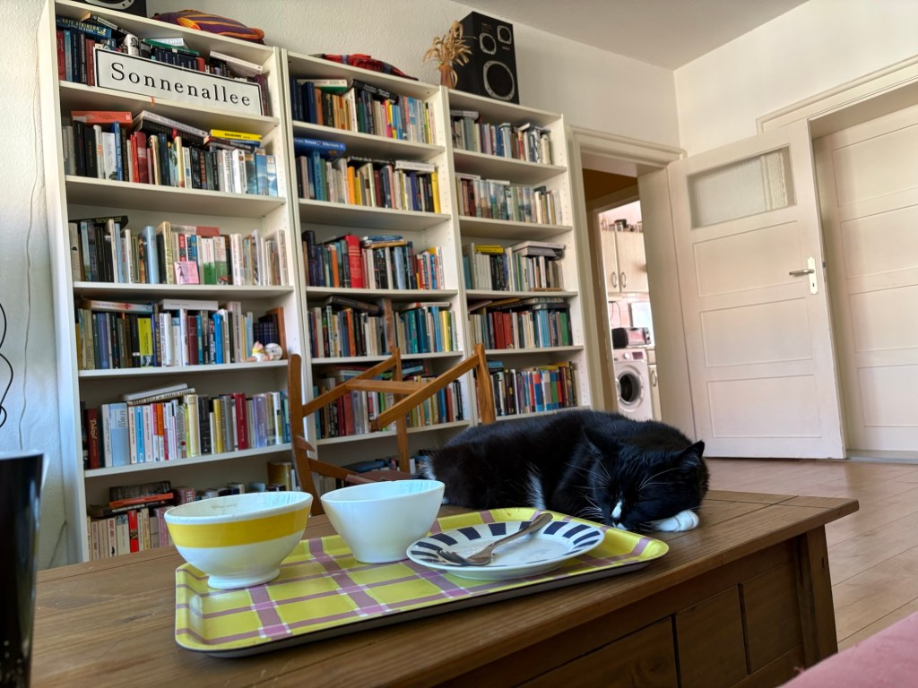Bald darauf ist es Zeit für nochmal Frischmachen und dann Flatterkleidchen und Zauberstiefel anziehen – heute Abend habe ich wieder ein Timeleft-Dinner. Zum Glück muss ich dafür heute nur in den Kollwitzkiez, kann laufen und bekomme so noch etwas Luftzug und Bewegung in den Tag. Es ist wieder ein rein weibliches Dinner (der Dienstag passte mir einfach besser), diesmal mit Teilnehmerinnen aus Italien, Deutschland, den USA und der Ukraine. Ich bin wieder die Älteste, diesmal aber nicht mit so großem Abstand und die Staffelung zwischen Ende 20 und Anfang 40 ist regelmäßiger.
