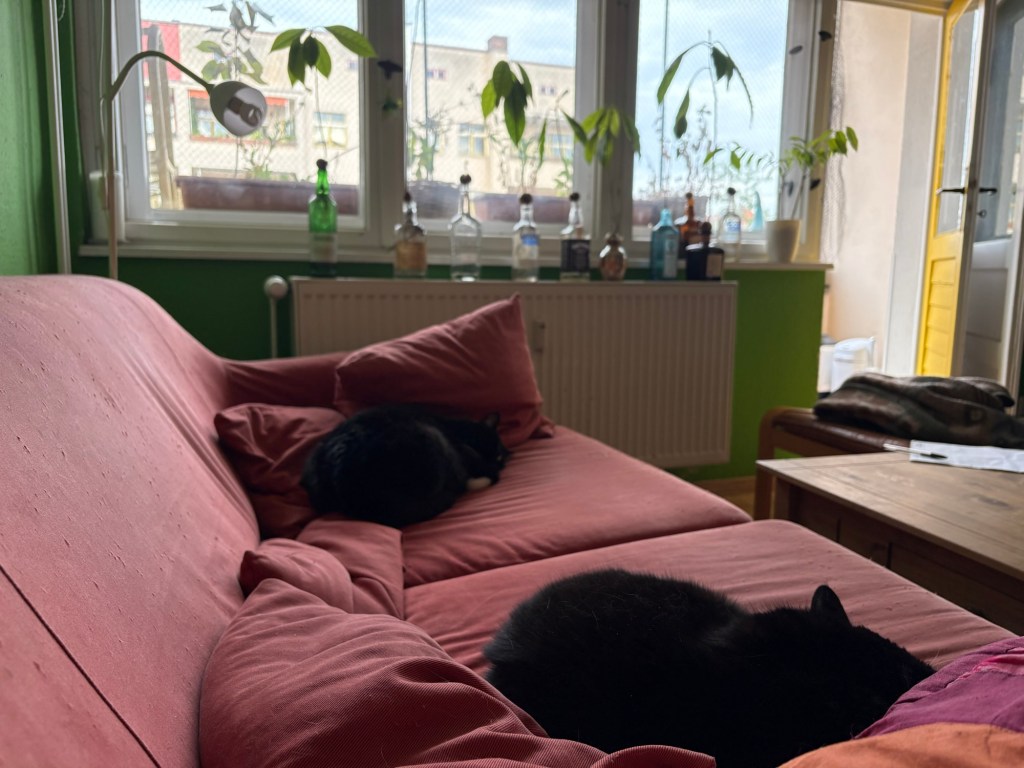 So gestärkt bin ich bereit für Französisch, Italienisch, Rätsel und dann ist es auch schon Zeit für das erste Webinar des Tages, das ich auch auf dem Balkon wahrnehme. Währenddessen bedeckt sich der Himmel und dann fängt es an zu regnen. Erst sanft, dann monsunartig, aber schnurgerade nach unten, so dass ich weiterhin trocken sitze. Nimbin schläft auf mir, die Blase drückt, aber was soll ich machen? Dann kommt mir der Wettergott zu Hilfe, schrägt den Regen an und fügt Hagelkörner hinzu. Nimbin erwacht unwirsch und geht nach drinnen, jetzt kann ich auch und außerdem den Laptop in Sicherheit bringen.